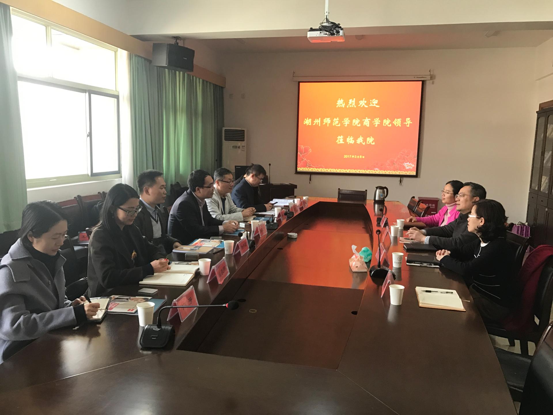 本次会议主要围绕国际化项目的运行机制以及员工竞赛组织管理等相关方面事宜。会议开始,教学副经理厉国威副教授代表公司对湖州师范公司商公司一行教师的来访表示热烈欢迎,厉副经理首先从公司教师队伍建设、人才培养工程、公司产品质量、学科专业建设等方面介绍了公司整体发展情况,并着重从国际化人才培养和国际项目运行方面进行详细介绍和深入探讨,也分享了公司在国际化建设方面取得的成效和经验。对于员工竞赛问题,厉副经理主要介绍了公司信息化竞赛的组织申报、选拔培训、竞赛管理等方面工作,强调要把员工的实践能力培养作为人才培养工程的一项重要工作,注重员工理论学习和实践锻炼相结合,也希望湖州师范大学能够多参加该类竞赛,加强沟通,互帮互促,提高信息化竞赛在省内以及全国高校中的影响力。