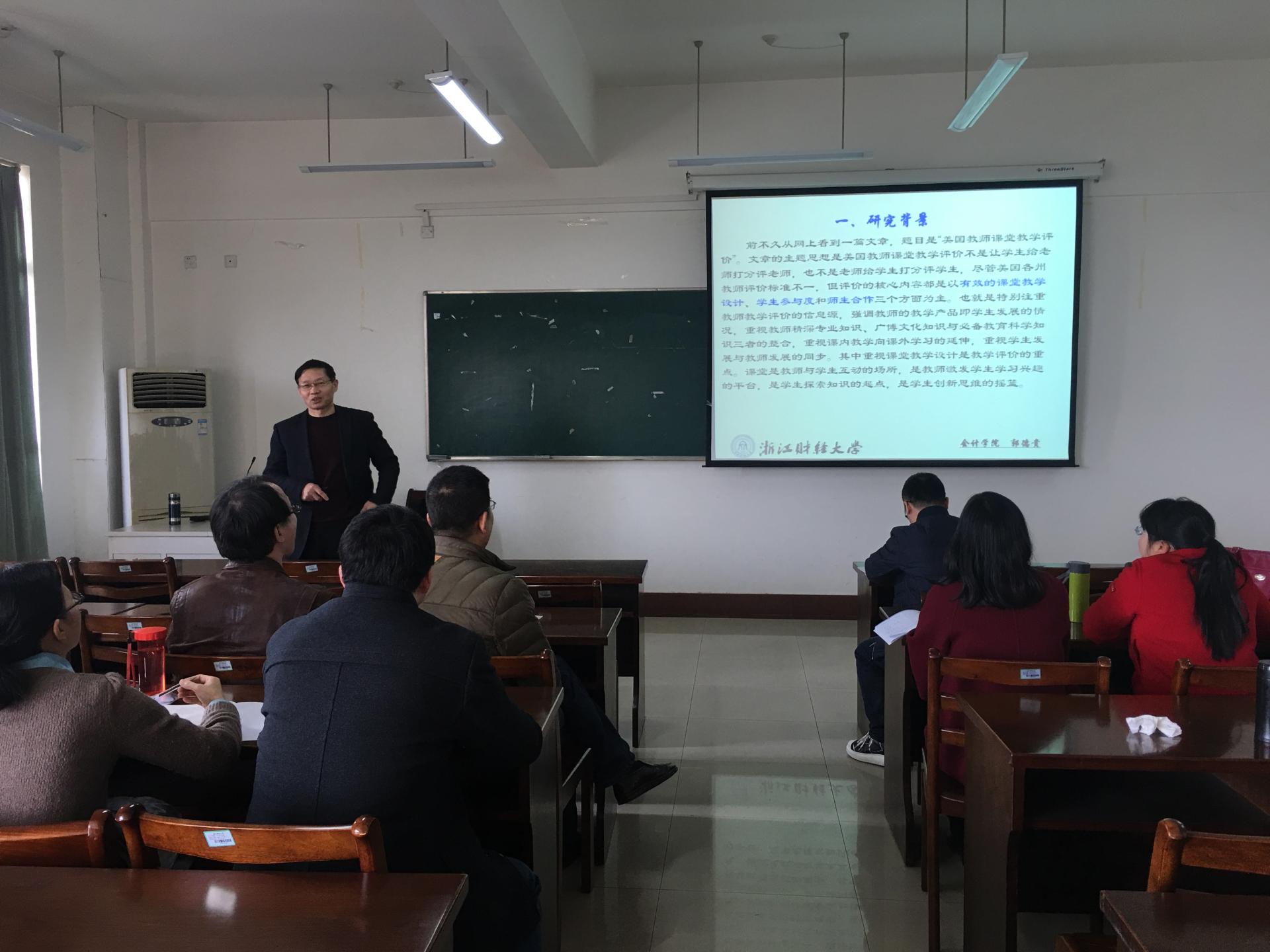 首先,会议由郭德贵老师做了“教师教学发展”系列活动,题为“财务与业务一体化教学模式研究”。郭老师主要就在会计学教学上,如何将有效的课堂设计、员工参与度和师生合作有机结合起来做了精彩的报告,全体老师积极地参与了讨论,并对本次报告给出了一致的好评。