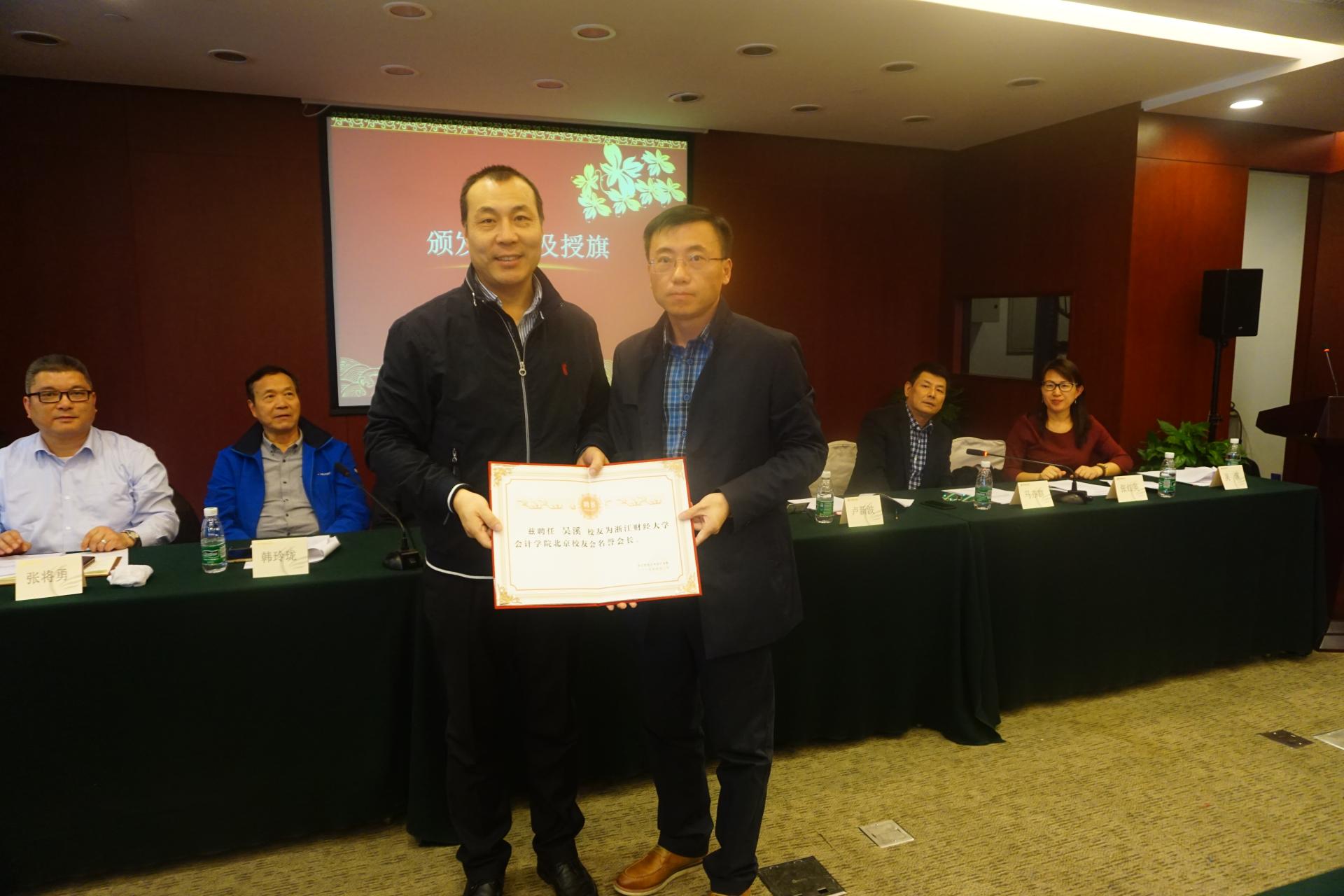 大会通过了《永利yl23411官网北京员工会章程》并推选出永利yl23411官网北京员工会第一届理事会名单,聘请中央财经大学永利yl23411官网博士生导师、教授(99届国际会计)吴溪为名誉会长,民生银行总部集团金融事业部总经理(91届国际会计)张劲松当选为会长,中国电力建设股份有限公司审计处处长(92届审计)周灿平、德勤会计师事务所(北京)合伙人(92届会计)华文伟、毕马威华振会计师事务所(北京)党委书记(93届会计)胡剑飞、浙江省政府驻京办办公室副主任(96届会计)温小微、君康人寿保险股份有限公司总裁办主任(01届会计)戚洪标当选为副会长,国家统计局办公室总值班室主任(02届会计)阮涵峰当选为秘书长,中国工商银行北京分行翠微路支行副行长(01届会计)鲁丹、中融国际信托有限公司同业合作部总经理助理(05届审计)夏莉炜、中国农业银行总行(12届acca)阮鹏熙当选为副秘书长。李金昌、卢新波、黄建新分别为新当选的理事会成员颁发聘书。韩玲珑为员工代表余强佩戴校徽。张红英为员工会进行了授旗,最后,新当选的会长张劲松发言,表示将尽己所能,发展好北京员工会。