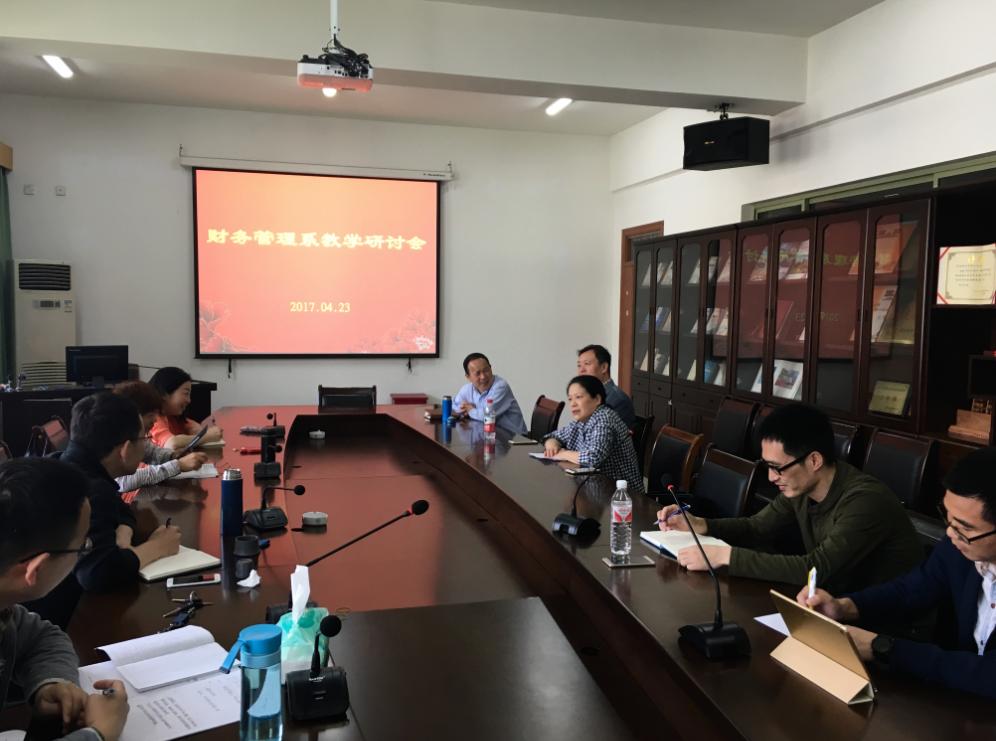 2017年4月23日上午9:00,财务管理系在永利yl23411官网406会议室召开教学科研研讨会,会议由财务管理系系主任吕岩老师主持。会议主要有三项议题:一是教学课题孵化及教学改革经验分享;二是课题申报书撰写经验分享;三是财务管理校级精品在线开放课程建设情况汇报沟通。