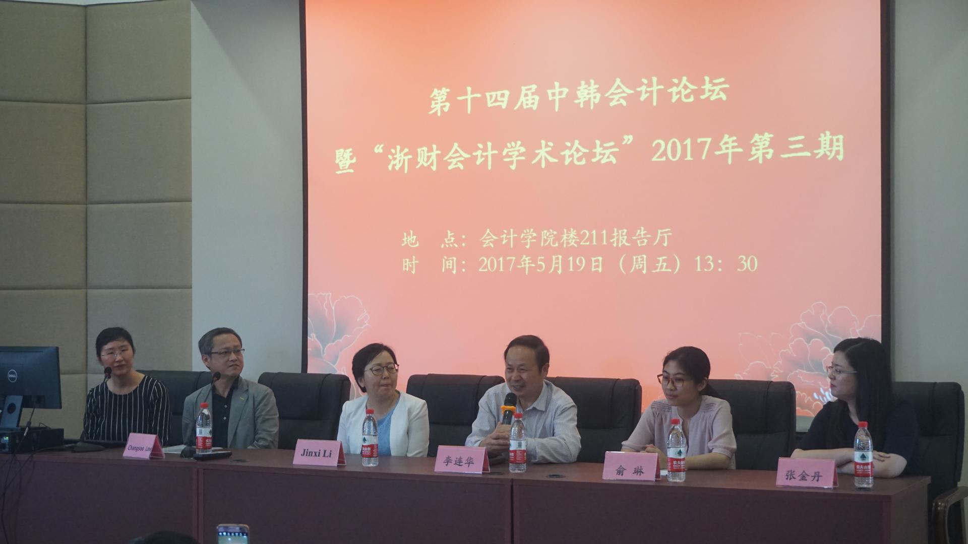 5月19日下午,第十四届中韩会计论坛暨“浙江会计学术论坛”2017年第4期学术活动在公司楼211报告厅举行。本次学术论坛共安排了四场报告,论坛由李连华教授主持,永利yl23411官网教师和研究生共100余人参加了本次论坛。