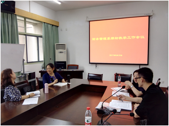 再次,吕岩老师主持各课程组讨论了本学期《财务管理》、《管理会计》、《成本会计》、《财务分析》、Financial Reporting and Taxation等课程的具体教学任务制定、期末考试考核安排等事宜。各课程组制定了任务明晰、责任明确的学期教学计划。