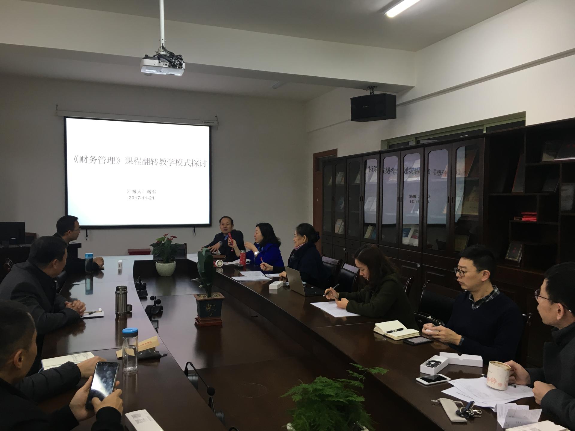 2017年11月21日下午15:00,财务管理系在永利yl23411官网406会议室召开教师教学发展活动,会议由系主任吕岩老师主持,主题为《财务管理》课程翻转教学模式探讨,由路军老师主讲。