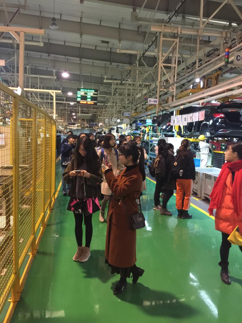 同学们在工厂里参观了出场零部件组装成完整配车的过程,在工厂的制造工艺中,处处都有人工智能的身影,人和机器的亲密联系造就了生产线的高效。之后,老师和同学们也尝试着驾驶了工厂新鲜出炉的纯电力新能源汽车。