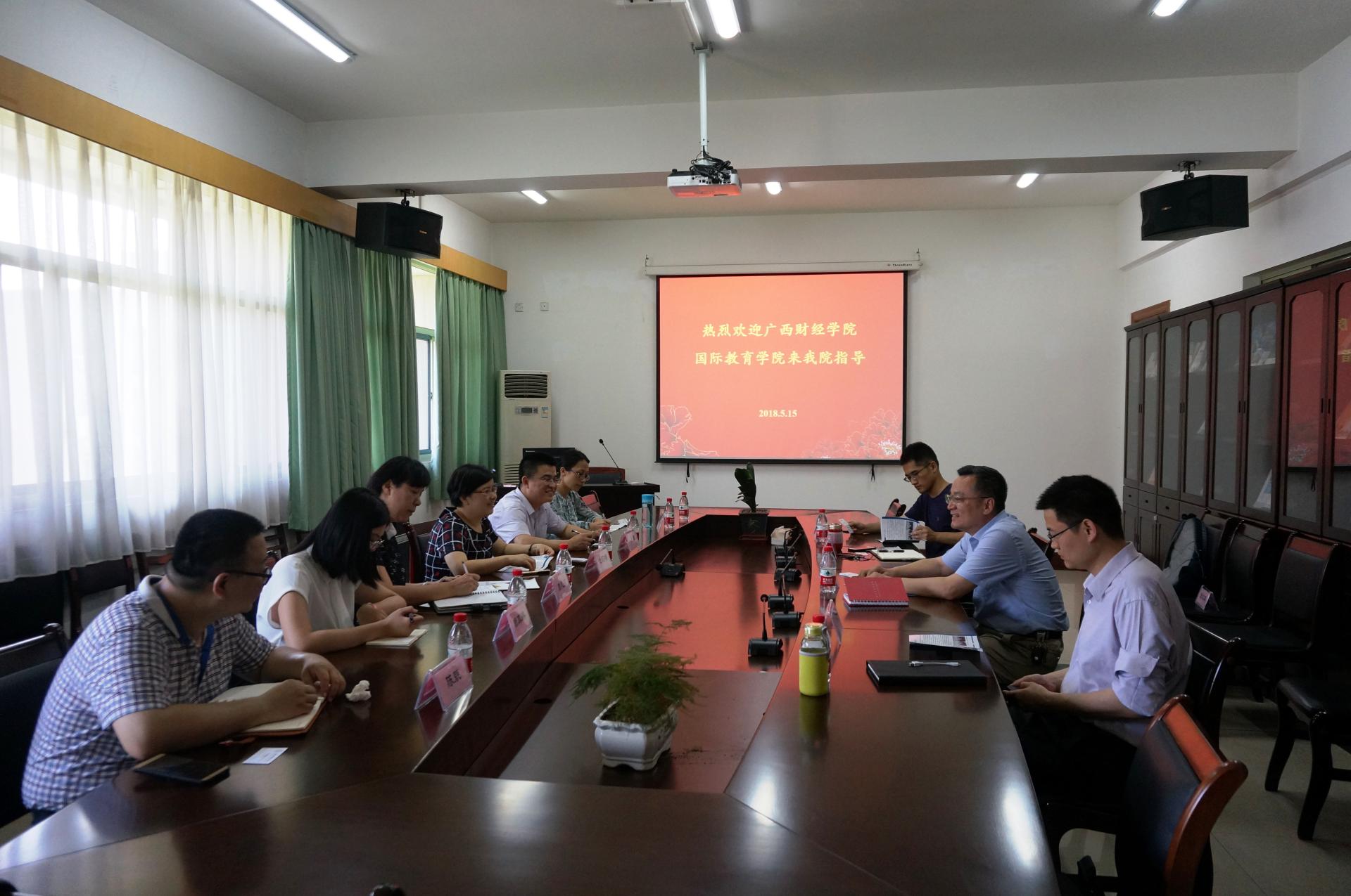2018年5月15日上午,广西财经公司国际教育公司经理池昭梅、副经理聂勇、美国温斯普洛大学广西代表周礼文、中美国际会计项目负责人赖真臻、中澳项目负责人李冰轮、办公室主任陈兢一行六人来公司交流。公司党委书记张红英、副经理厉国威、国际教育中心主任葛晓蕊、CPA Canada项目主任张文珂、中加项目主任黄志雄参加交流会。