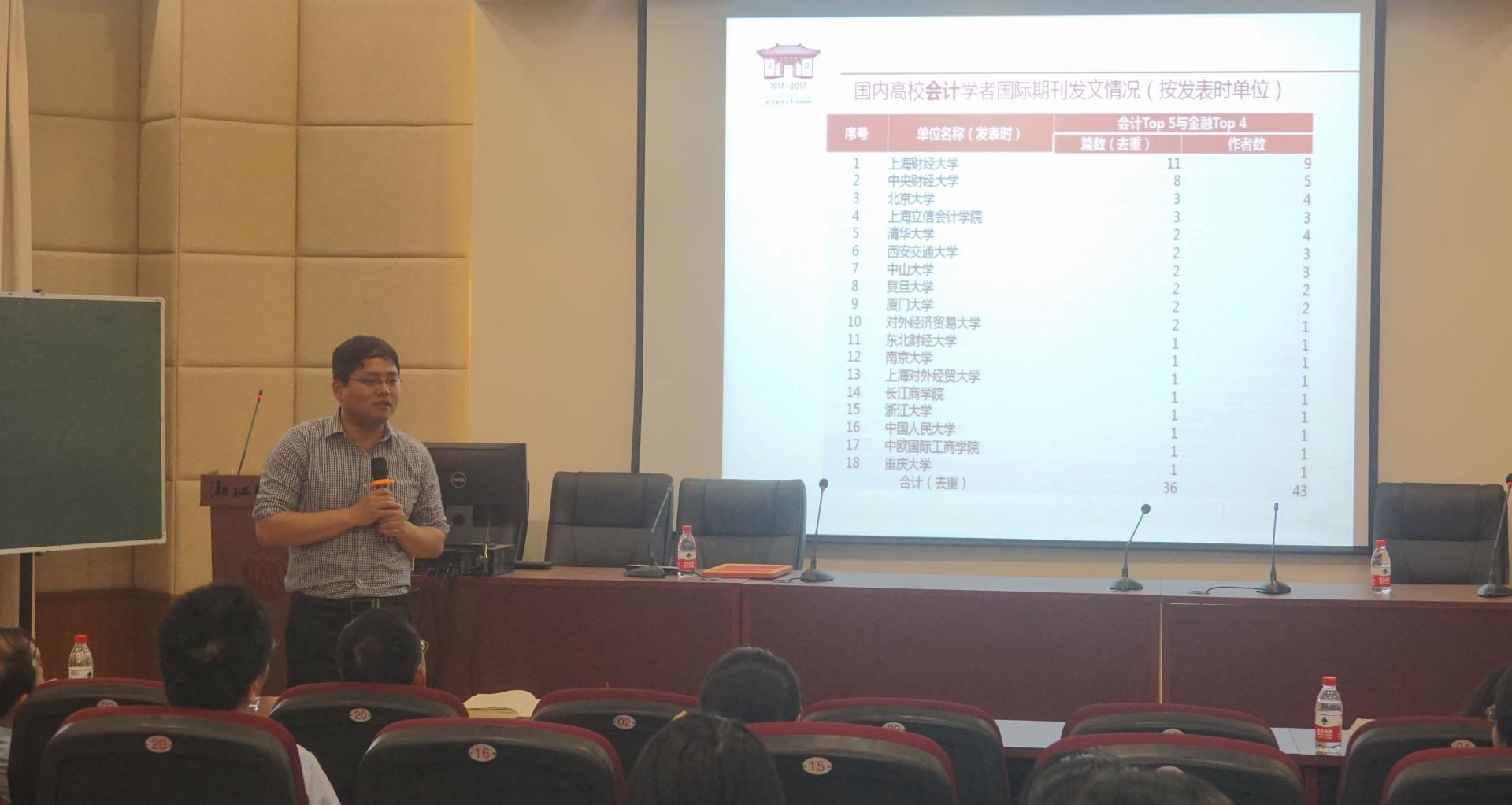 何教授的报告主题是“中国会计问题国际期刊发表:关于选题和方向的分析和讨论”。首先,在介绍中国实证会计研究发展历程的基础上,何老师系统地总结了中国会计问题研究在国际期刊上的发表情况。他认为,中国会计研究在国际期刊上发表主要有两者模式:一是专注于中国特色的研究问题,二是用中国的数据研究一般问题。其次,何老师与我们分享了他对在国际期刊发表论文选题和方向的看法。他认为,研究选题应该基于新现象和新问题,力图对现有文献做出增量贡献。同时,研究不能仅仅局限于会计领域,要注重与经济学、财政学甚至自然科学的相关学科结合不断拓展研究领域和方向。最后,基于国家自然科学基金课题的申请主题,何老师深入地分析了他对会计学研究未来发展方向的看法。