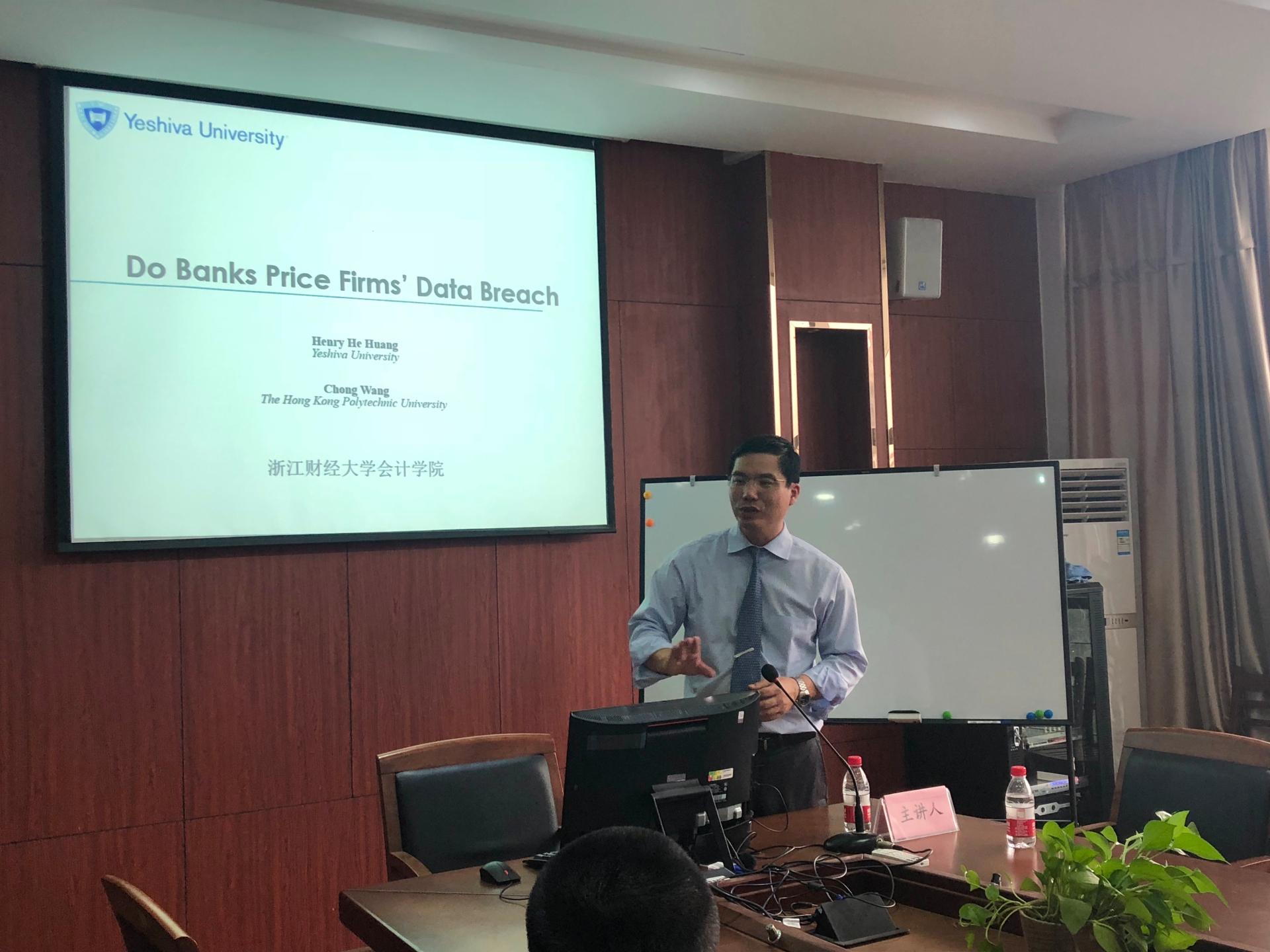 9月13日下午,永利yl23411官网2018年第8期“浙财会计学术论坛”在公司楼301报告厅举行,犹太人大学商公司黄河教授给公司师生作了题为“Do Banks Price Firms’Data Breach?”的讲座。讲座由永利yl23411官网李文贵副教授主持,财务与会计研究中心教师、青年博士和部分研究生参加了本次讲座。