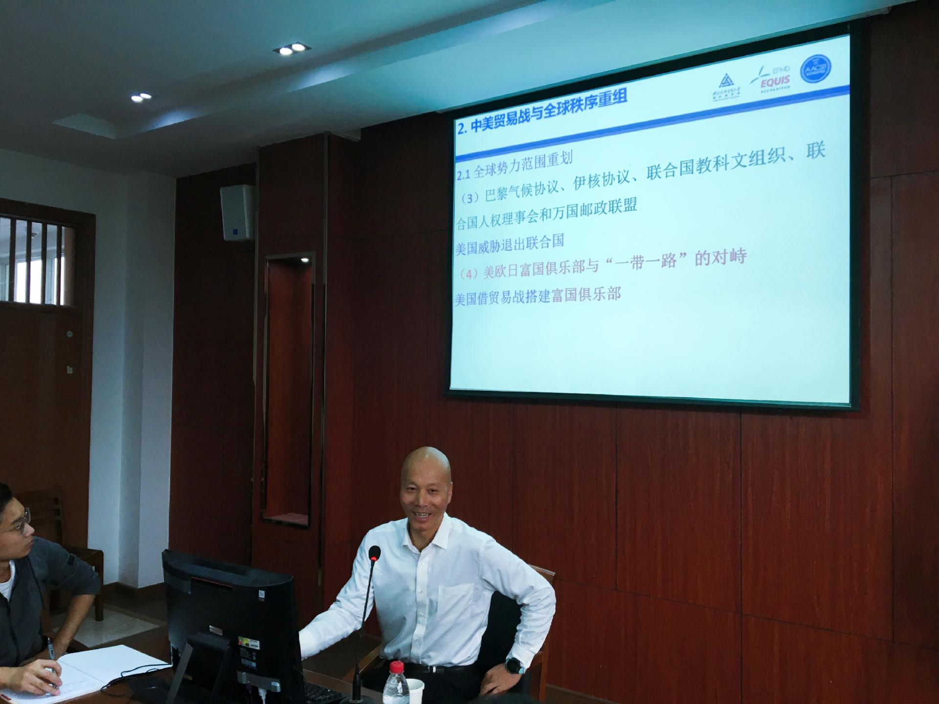 11月2日下午三点,财务高管论坛2018年第5期学术活动在公司楼301教室举行。本次论坛主题为“中美贸易战与全球价值链重构”,对外经济贸易大学国际商公司教授、博士生导师郑建明老师主讲。本次讲座由公司副经理邓川老师主持,2018级全体专硕和部分会计学硕研究生参加了本次讲座。