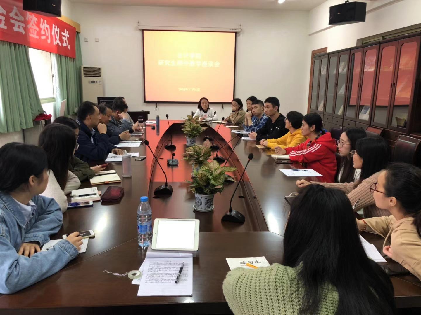 2018年11月6日,永利yl23411官网研究生期中教学检查座谈会在公司楼406顺利举行。永利yl23411官网副经理邓川老师,研究生督导组张守凯老师,永利yl23411官网督导组杨忠智老师、戴娟萍老师、赵宇恒老师,永利yl23411官网研究生秘书郭媚老师、永利yl23411官网科研秘书谭聪老师以及永利yl23411官网研究生各班的员工代表参加会议。