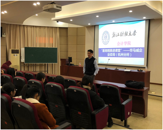 12月18日下午,公司在公司楼211报告厅举办了主题为“我在毕马威做并购的八年”的基地精英进课堂讲座。本次讲座由毕马威企业咨询(中国)有限公司财务咨询总监徐驾先生主讲,永利yl23411官网U.S.CPA方向班负责人成畅、永利yl23411官网各年级各专业同学以及部分研究生参加了此次讲座。