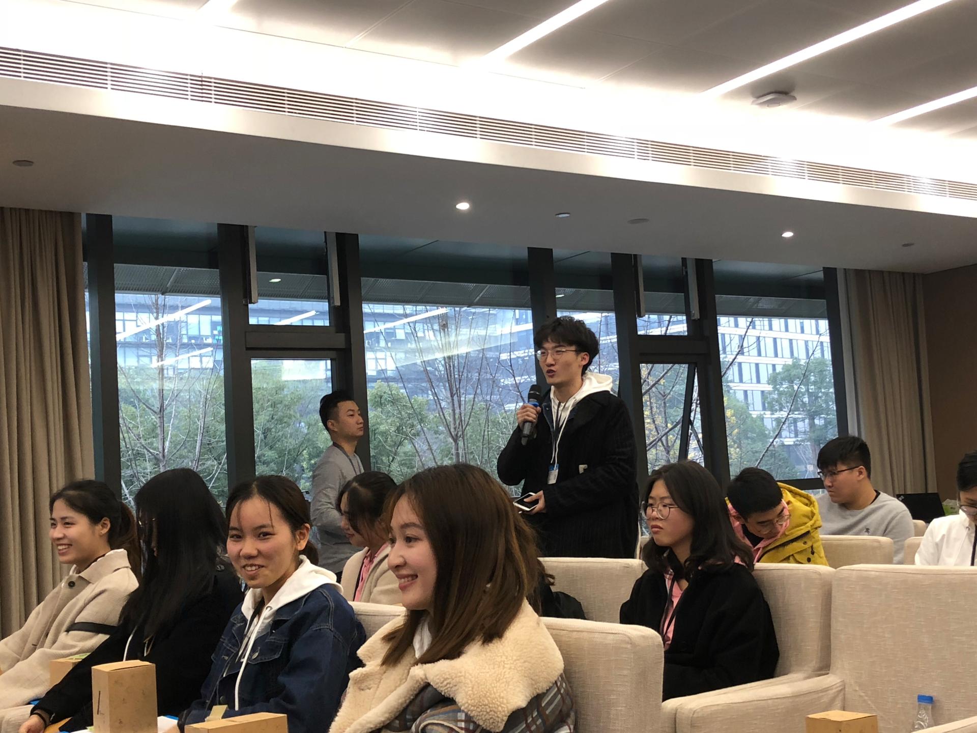 在倪行军和蒋军员工的带领下,大家参观了集团展览馆,详细了解了集团发展历程、企业文化、运营情况等。同学们对蚂蚁金服致力于搭建开放、共享的信用体系和金融服务平台,实现普惠金融的服务理念表示深深的认同,对阿里巴巴的不怕困难、拥抱变化、勇于创新等企业文化以及巨大的社会责任感和使命感表示深深的钦佩。陈修鼓励大家在未来要不畏困难、砥砺前行。