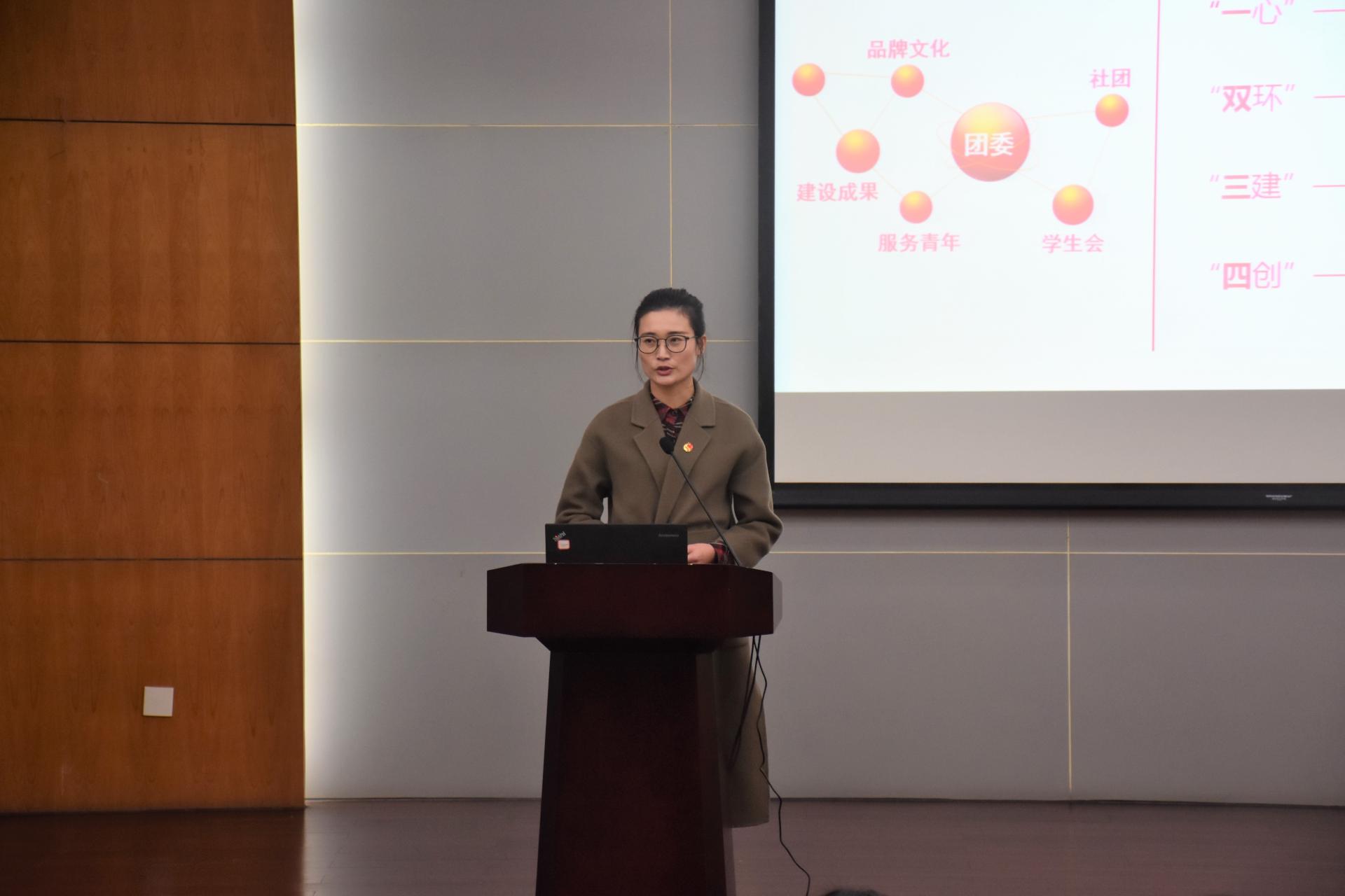 一直以来,永利yl23411官网团委紧紧围绕 “一心双环,三建四创”多维一体的团学新格局,开展相关活动,取得斐然成效。朱丽娟老师就永利yl23411官网2018度的团委工作做了详细汇报,她提到:“团十八大报告中强调,我们要不忘跟党初心,牢记青春使命,未来,希望会计团学工作可以继续像“一二三四”这响亮的口号一样,继续迈正步走正道,要始终坚持以团委为核心,以员工会和社团为双翼,以服务青年为目标,以品牌服务为依托,把团员青年更好地培养成浙财铁军和浙财力量。”