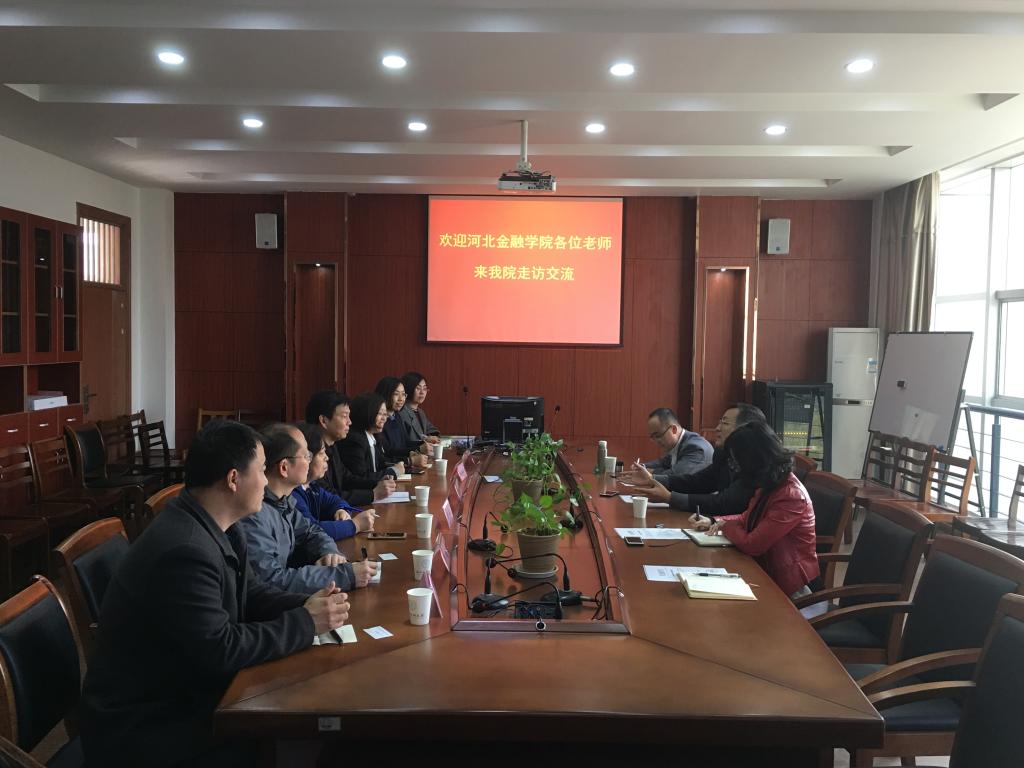 3月26日上午,河北金融公司会计系主任程培先、副主任 杨会朴以及各教研室主任一行8位老师来公司进行交流学习,公司副经理厉国威、财会系系主任王成方、国会系系主任傅颀、国际教育中心主任葛晓蕊、教学办邵宜添参加会议。