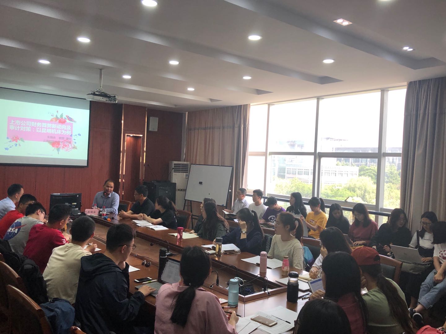在朱锦余教授讲解下,同学们对上市公司财务舞弊和审计实务有了深入的了解,受益匪浅,本次论坛在愉快的气氛中结束。(图/文缪泽婷)