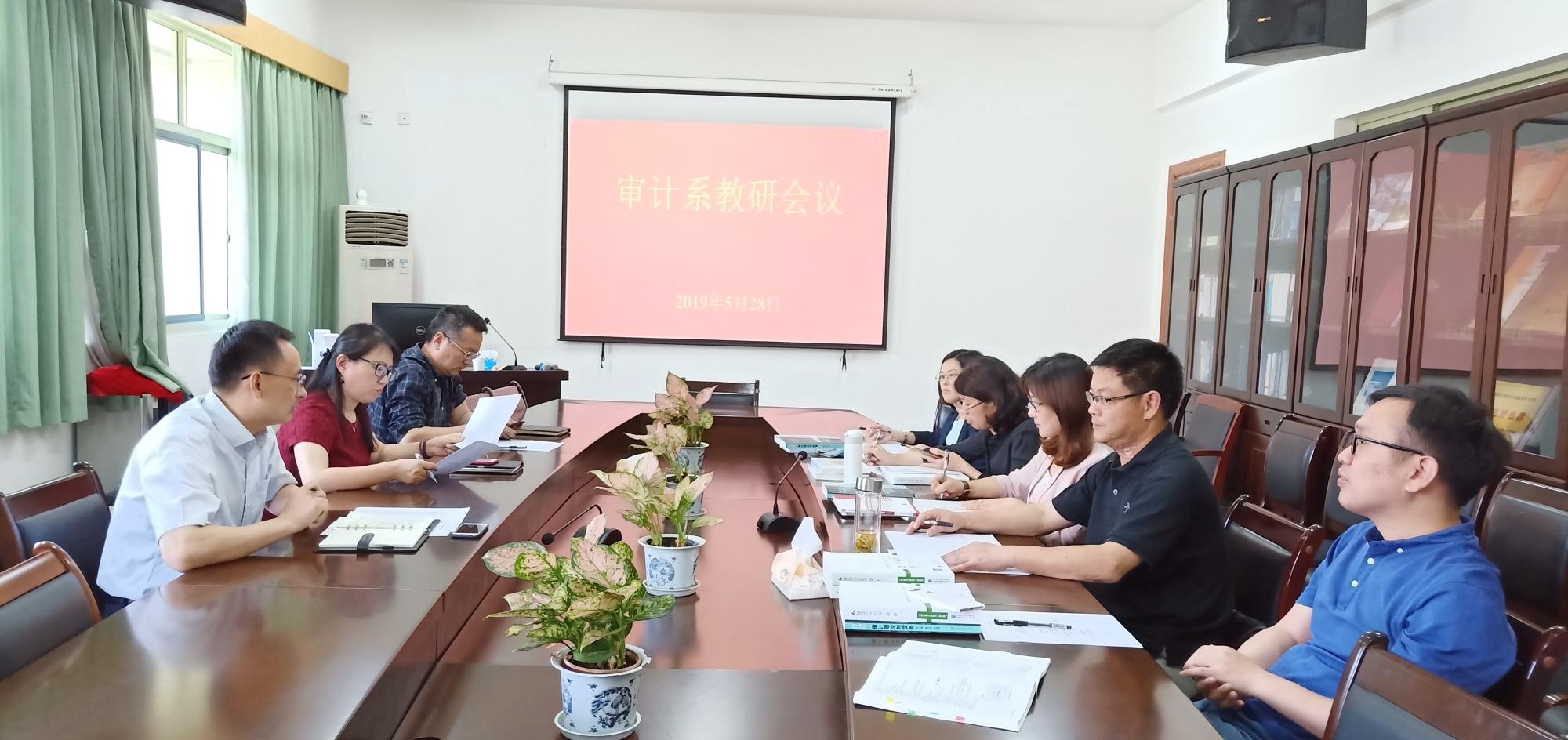 2019年5月28日上午在公司406办公室,审计系召开了教研会议。本次会议的主题包括:一是国家一流专业的申报;二是审计学特色专业建设项目中期总结汇报。本次会议由邓川老师主持,审计系全体老师参加。