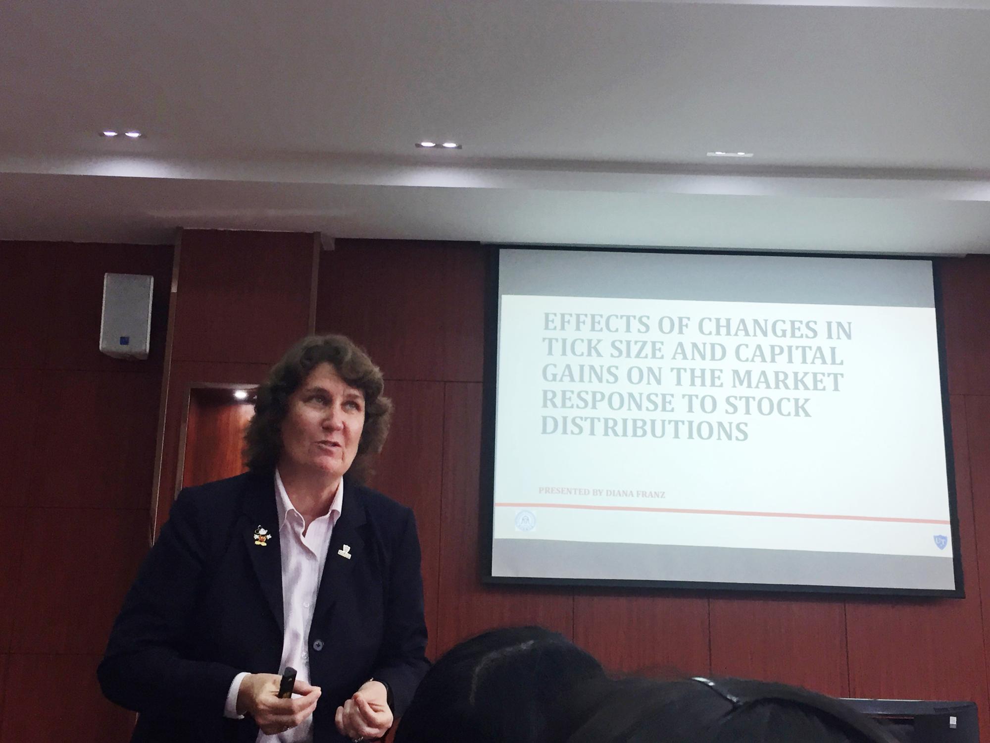 6月25日下午,浙财会计学术论坛2019年第6期学术活动在公司楼301教室举行。本次论坛主题为“Effects of Changes in Tick Size and Capital Gains Tax Rates on the Market Response to Stock Distributions”,Diana Franz 教授主讲。本次讲座由张金丹老师主持,会计与经济发展研究院教师、青年博士,2018级全体学术型研究生参加了本次讲座。