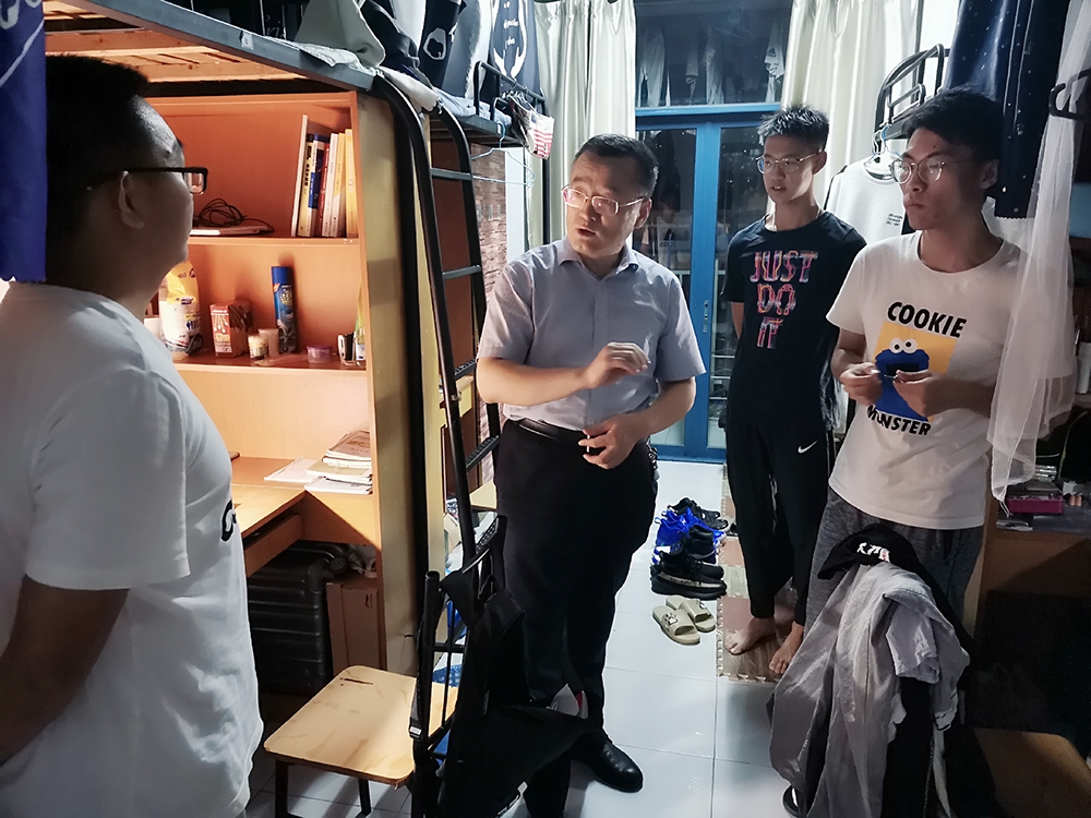 9月27日晚,永利yl23411官网副经理厉国威走访公司相关寝室,院2018级政治辅导员郑秋伟陪同走访。