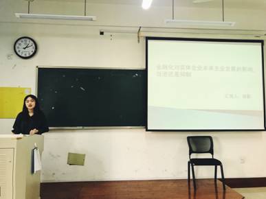 其次,骆影同学讲解的文章题目为《金融化对实体企业未来主业发展的影响——促进还是抑制》。该文章基于当前实体经济虚拟化这一热点问题,研究了实体企业金融化对未来主业发展的影响。本文以2008——2014年中国A股上市公司为研究样本,并基于公司资产负债表数据,构建了微观企业金融化指标,实证结果发现:总体上,金融化损害了实体企业的未来主业业绩,表明金融化的“挤出”效应大于“蓄水池”效应。文章还发现了金融化降低了企业的创新以及实物资本投资,并且,相比于非国有企业,金融化对未来主业业绩的损害效应在国有企业中更大。本文的研究为金融化影响实体经济提供了微观层面的经验证据,并且对于政府引导资金“脱虚向实”有一定的参考价值。
