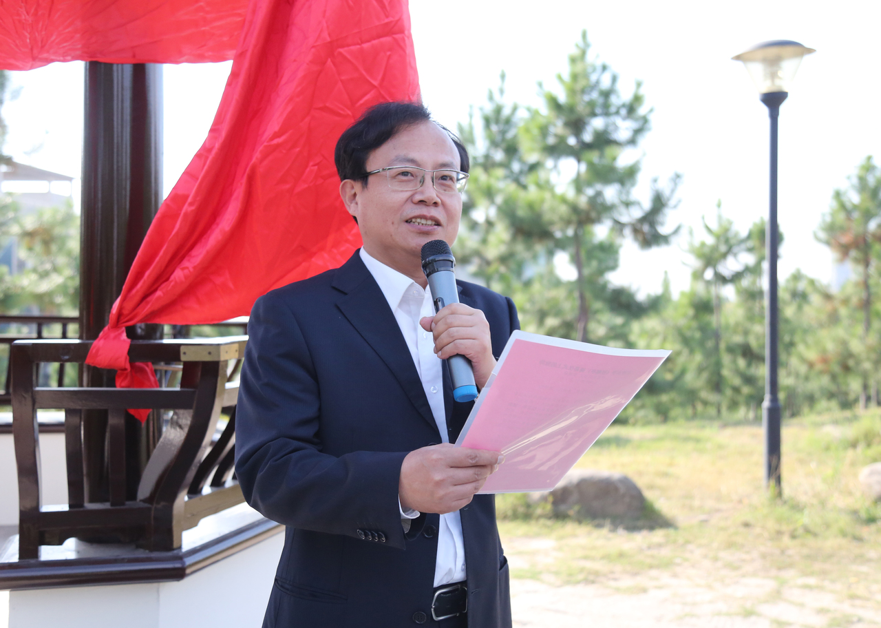 黄建新代表公司对员工亭(望潮亭)的落成揭幕表示祝贺。对捐资修建员工亭(望潮亭)的张将勇等员工表示感谢。这一善举饱含着会计861、862班的员工们对母校的深情厚谊和美好祝愿,也是对母校45周年华诞的献礼。