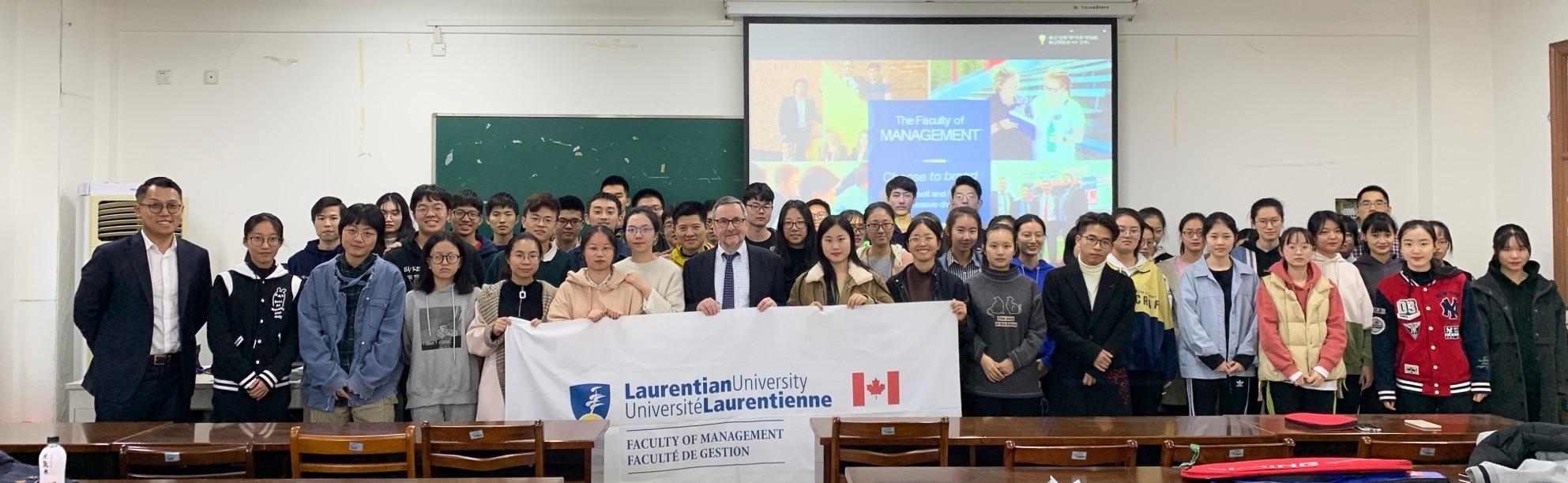 会议结束后,代表团一行与18级和19级中加班员工见面。见面会上对中加项目进行了讲解,包括赴加学习申请、赴加学习一年的课程安排、住宿生活安排以及出国前的准备等,帮助中加班员工更好地了解中加合作项目内容与特色,并解答了同学们各种疑惑,让同学们对未来的发展有了更深层次的把握。