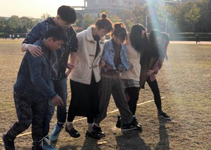 比赛开始前,主持人将参赛同学分为6个小组,各小组在规定时间内分别设计了自己的队形,口号及其涵义。此环节充分展现了同学们的创新及协作精神。此次活动包括了5项游戏,全体成员同时依次参加每一项游戏。