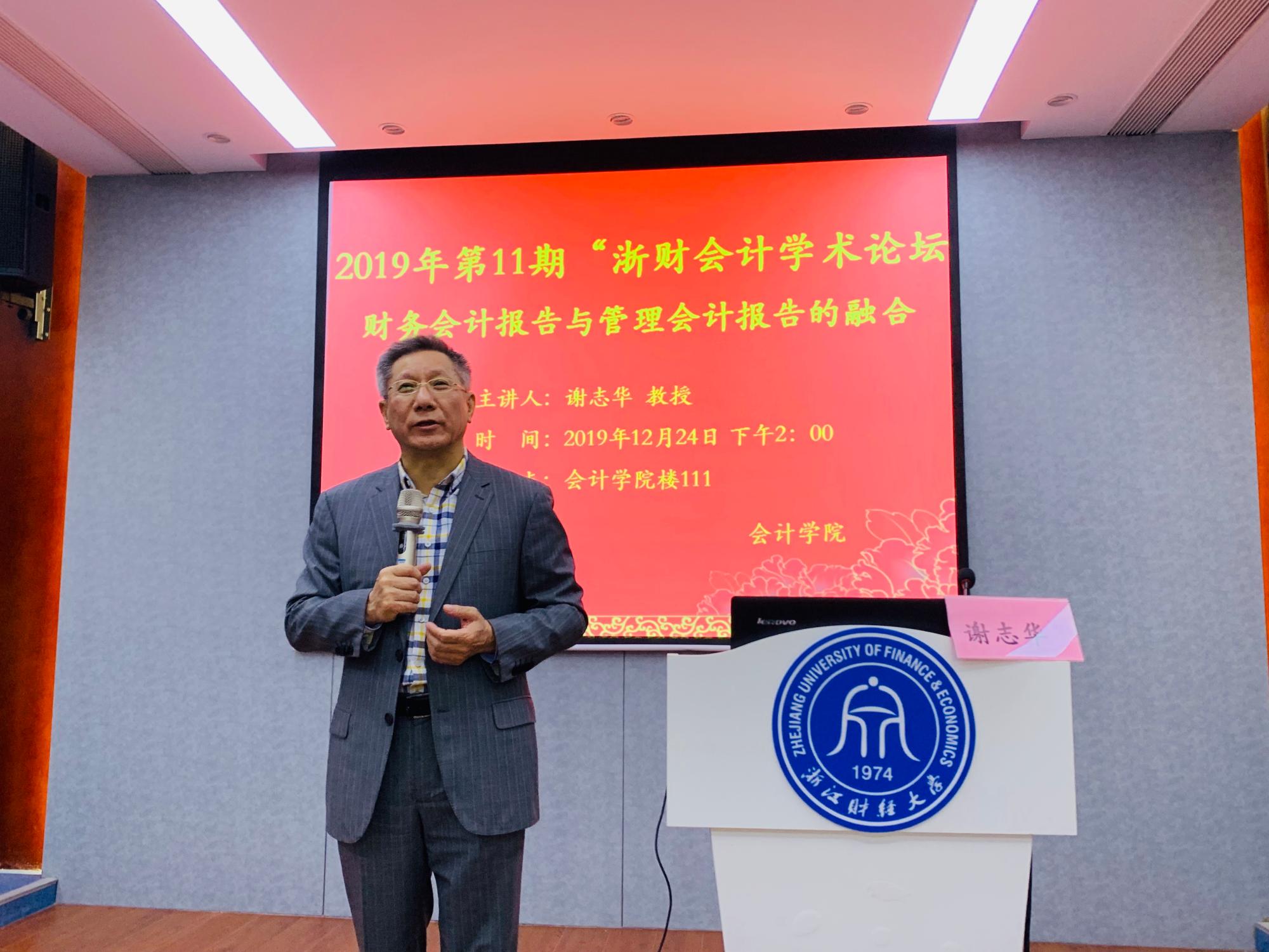 12月24日下午,浙财会计学术论坛2019年第11期在公司楼111拉开序幕。论坛的主题为“财务会计报告与管理会计报告的融合”,由北京工商大学副董事长谢志华教授担任主讲人。本次论坛由永利yl23411官网副经理邓川老师主持,2019级全体硕士生以及永利yl23411官网部分老师参加了此次论坛。