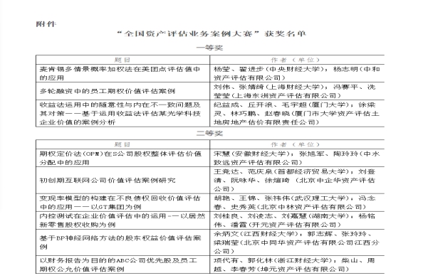 公司资产评估系郭化林教授、项代有老师联合坤元资产评估公司参与了这次案例大赛,取得了可喜的成果。全国各高校和资产评估公司提交了79个参赛案例,评选出一等奖3名、二等奖6名、三等奖10名、优秀奖20名。由项代有和郭化林老师指导的两个案例在经过两轮评审后,均获得了专家认可。案例“以财务报告为目的的ABC公司优先股及员工期权公允价值评估案例”获得了二等奖,案例“商誉减值测试评估中市场法运用案例”获得了优秀奖。这是资产评估系一直贯彻“校企联盟,应用创新人才培养”模式的教学改革理念所取得的阶段成果。