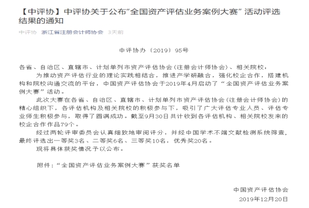 为推动资产评估行业的理论实践相结合,推进产学研融合,强化校企合作,搭建机构和院校沟通交流的平台,中国资产评估协会于2019年4月启动了“全国资产评估业务案例大赛”活动。