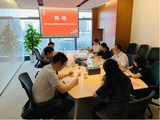 郭军总经理详细介绍了传化的基本情况,并对与公司在科学研究、员工实习培训、人才培养等方面开展深层次产学研合作提出了建议。随后,与会人员就公司与传化集团合作模式进行了深度探讨与交流。本次调研有效推进了公司与传化集团的合作,为未来校企共建协同育人的开展打下了基础。