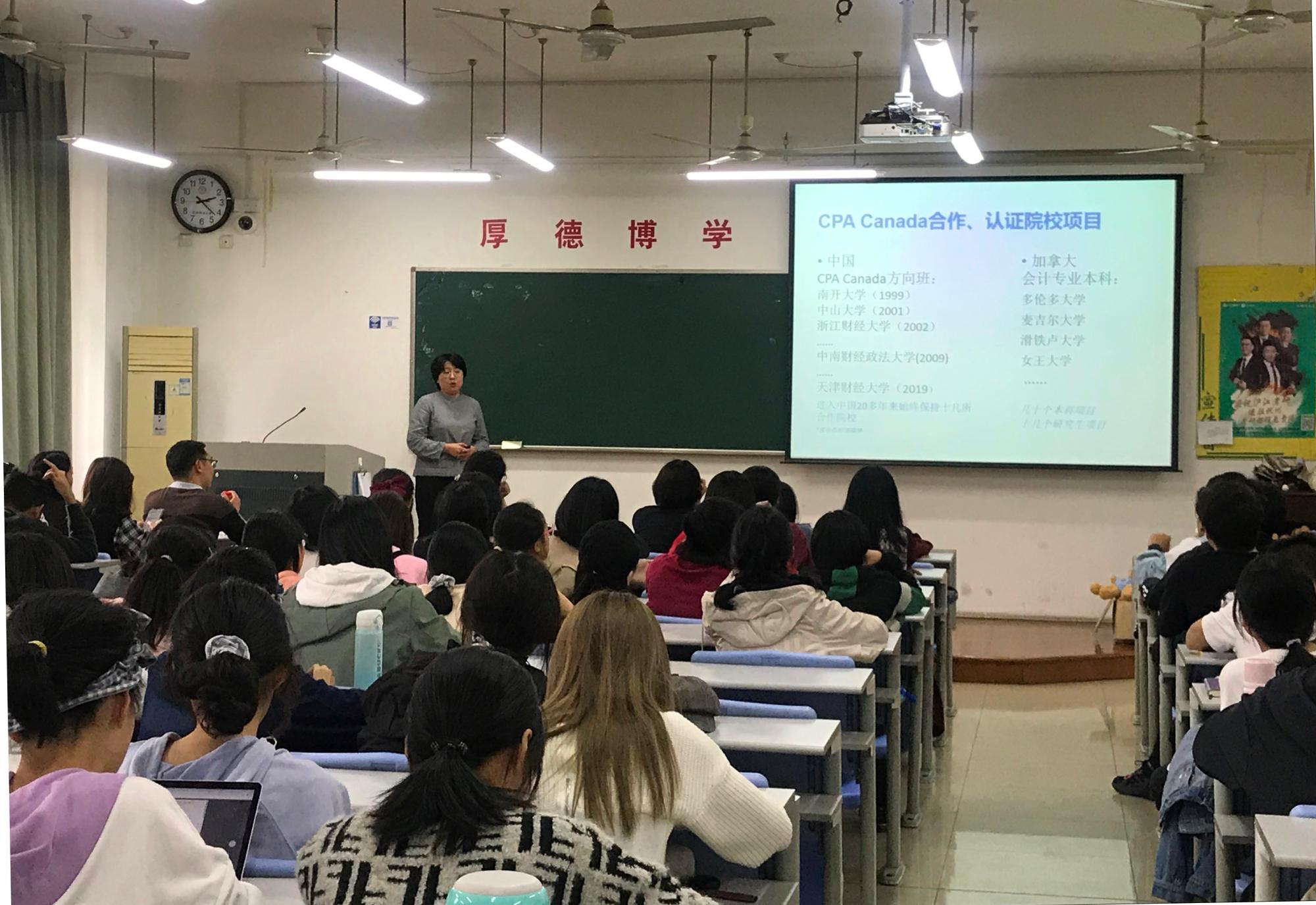 会议结束后,代表团一行与20级中加班员工见面。见面会上对中加合作办学项目进行了讲解,包括专业课程学习、赴加学习申请、赴加学习一年的课程安排、住宿生活安排等,让中加班员工全面了解项目内容与特色,对未来的学习及职业规划有了更清晰全面的认识。