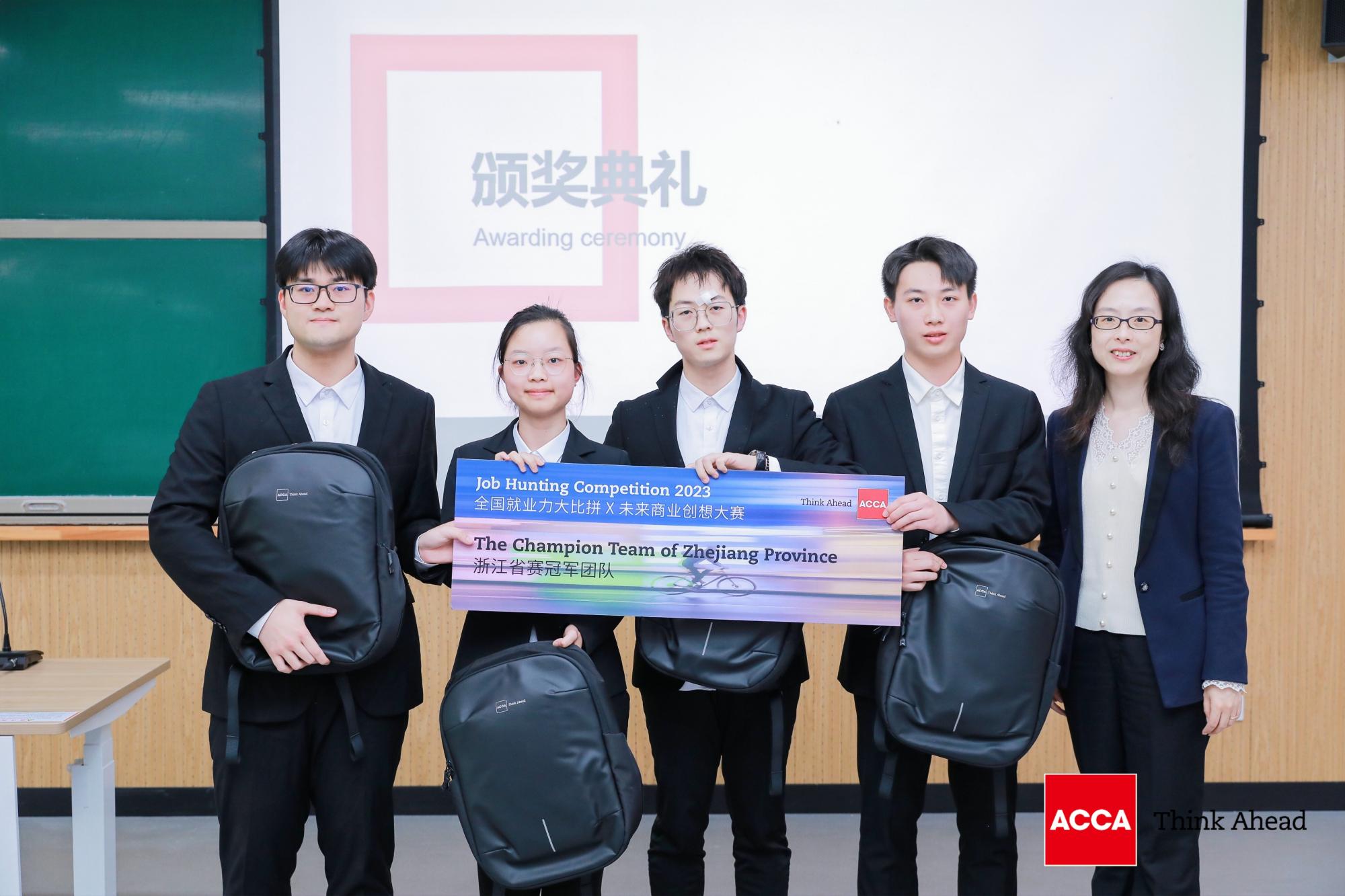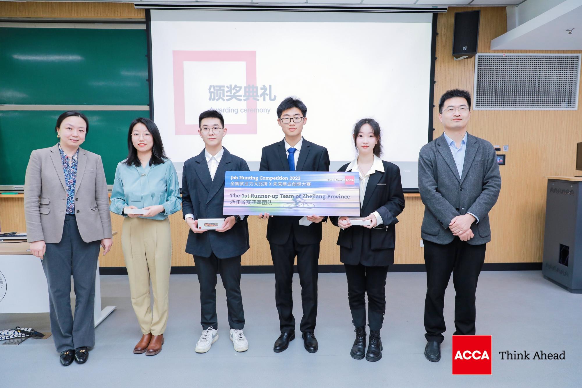 4月22日,由ACCA特许公认会计师公会主办的2023“ACCA全国就业力大比拼x商业创想大赛”(ACCA Job Hunting Competition x Think Ahead)浙江省决赛在浙江工商大学落下帷幕。公司学子组成的两支代表队在比赛中表现优异,勇夺冠亚军。其中,2021 ACCA 1班张司锴、杨奕成、2021 ACCA 3班李涛、周琳组成的队伍荣获冠军(指导教师为徐静),2020会计3班孙艺玮、2020 ACCA 2班王怡悦、2022 ACCA 2班沈文杰、2022 ACCA 3班陈琳翰组成的队伍荣获亚军(指导教师为成畅)。