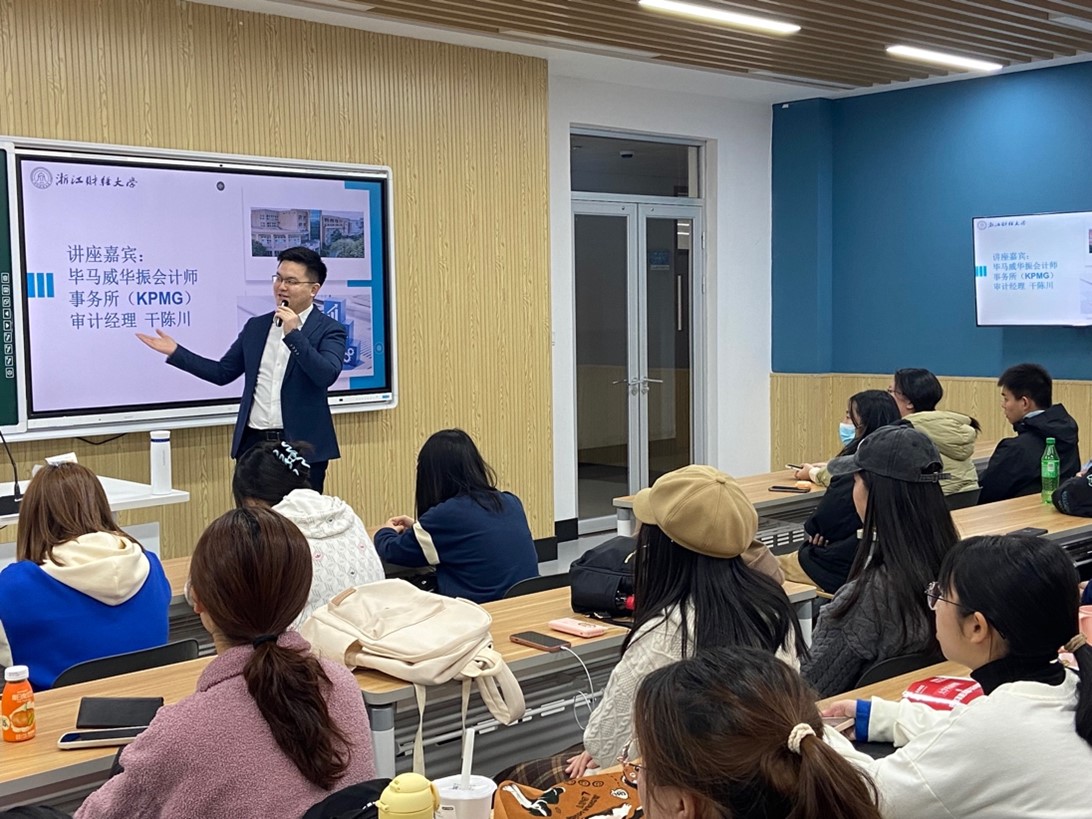 讲座伊始,干陈川首先通过提问了解同学们的大学规划情况,随后通过自身的学习和工作经历向同学们分享了如何合理规划老员工活、提升专业学习效率,从而具备未来成为一名优秀的会计师或审计师的能力。干陈川还向同学们介绍了会计师事务所的工作内容和审计经理的工作职责,以及申请成为四大会计师事务所的实习生需具备的能力和注意事项等。