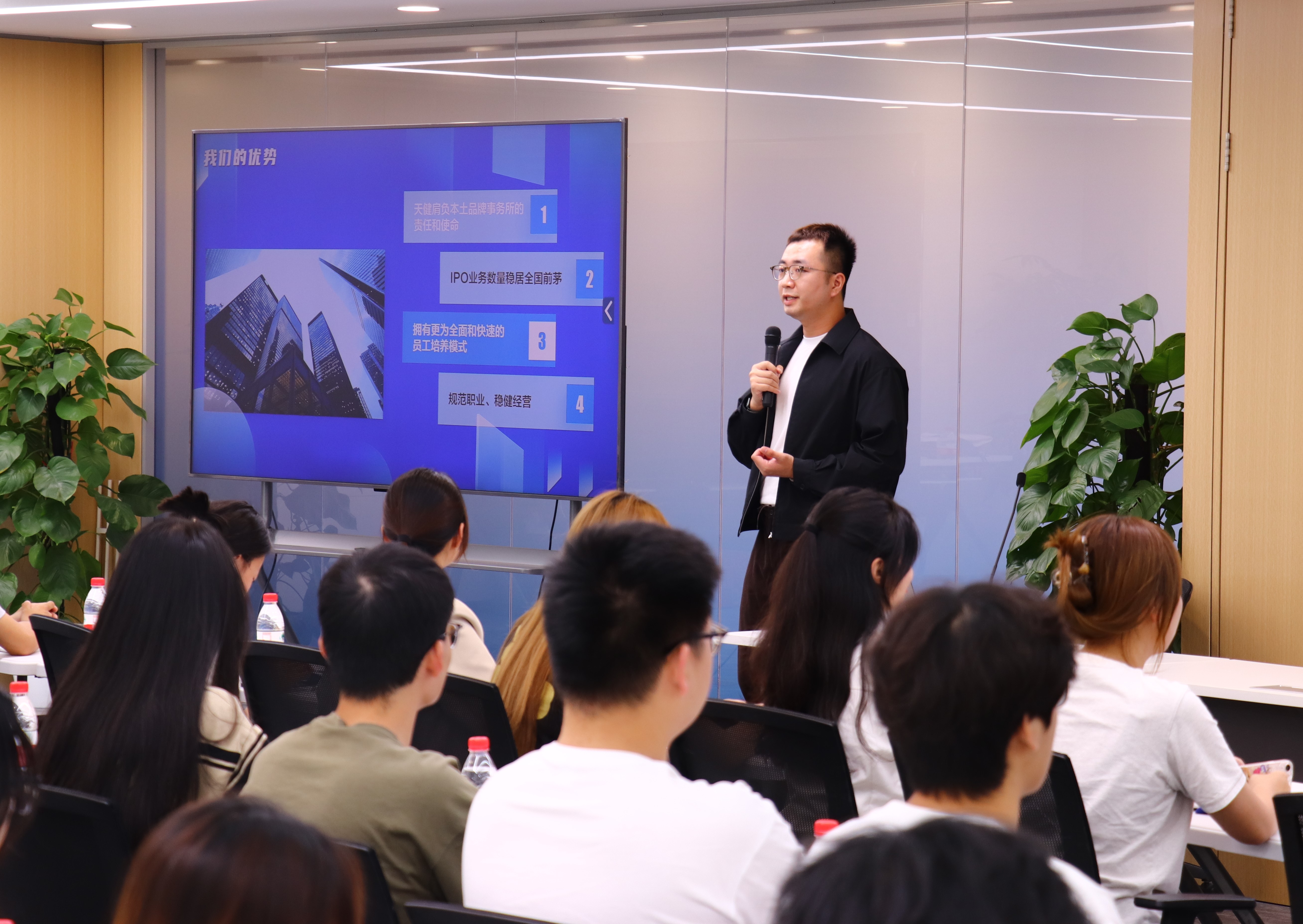 活动伊始,富金威带领员工们参观了天健会计师事务所的办公环境,让员工们近距离体验了审计人员的日常工作环境。随后,他从事务所的基本情况、招聘要求、员工职业发展、人才培训以及企业文化生活等多个方面为员工们做了详尽的介绍。