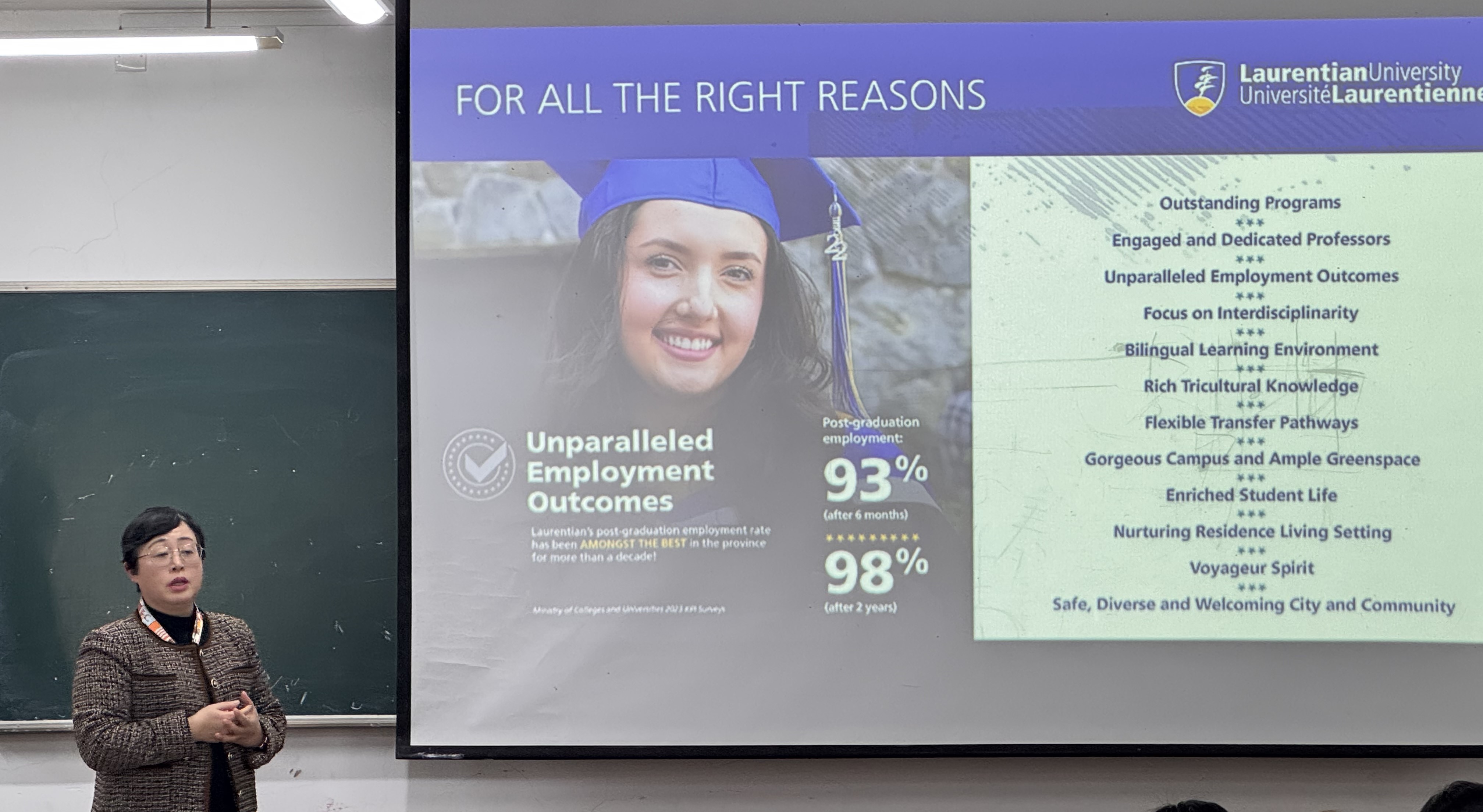会议尾声,劳伦森大学代表团与24级中加班员工会面。会上,详细介绍了中加项目的独特优势与丰富内涵,帮助同学们深入了解项目特色,明确学业规划与职业发展方向,并就员工们关心的学业及未来职业发展等问题进行了耐心细致的解答,为员工们的成长之路指明方向。