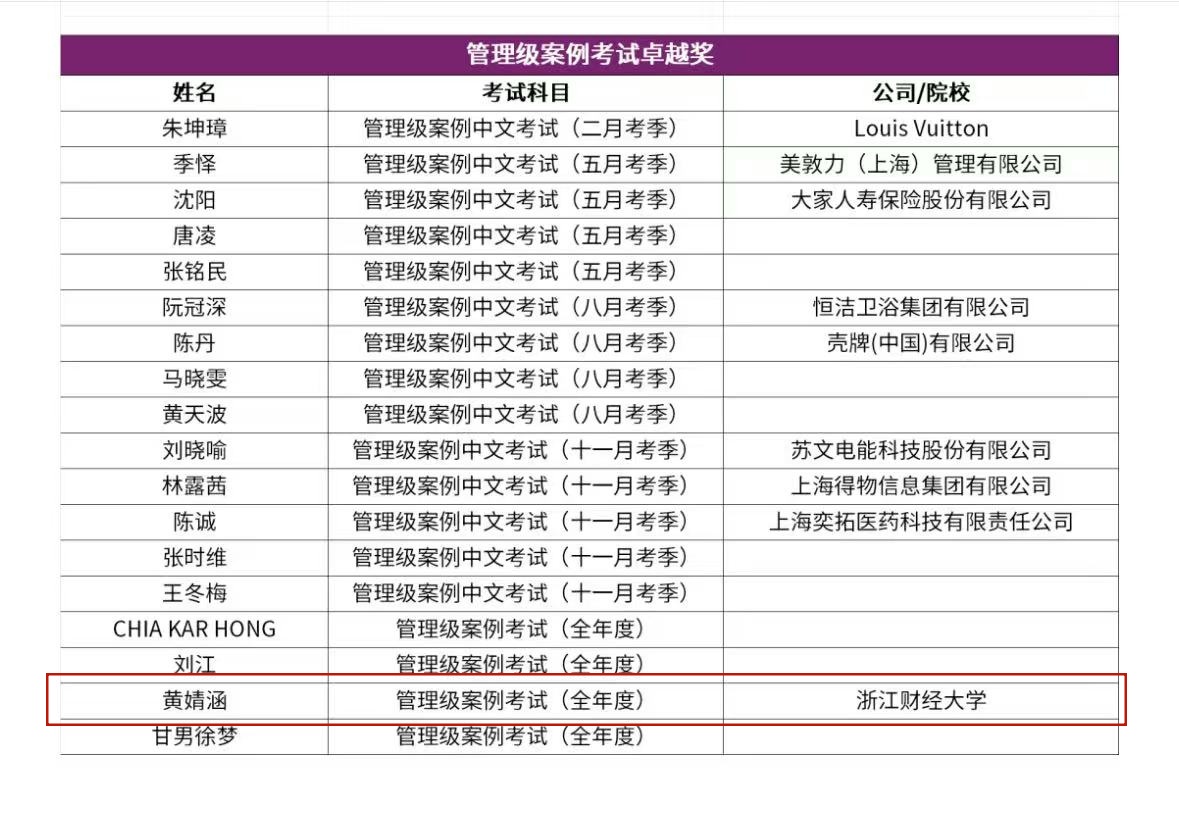 CIMA考试体系中的战略级案例全球统考极具挑战性,该考试覆盖182个核心知识点,全面考察技术、人际、管理、战略四大职业技能领域。黄婧涵同学以扎实的专业基础、明确的学习目标、高效的学习方法,充分展现了优秀会院学子扎实深厚的专业功底。