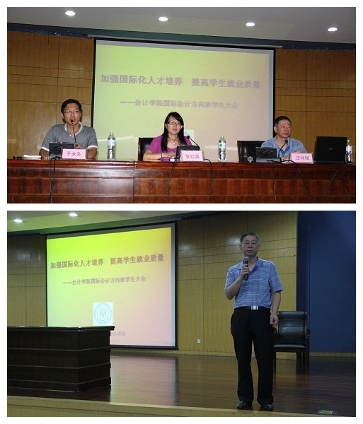 9月24日下午,永利yl23411官网国际会计方向班员工大会在学术中心一号报告厅隆重召开。永利yl23411官网经理汪祥耀、副经理于永生、公司党总支书记张红英、公司党总支副书记张虹、国际教育中心主任傅黎瑛、副主任葛晓蕊、学办主任王韵、分团委书记陆建良、财务管理系主任杨忠智、审计系主任陈东等老师参加了此次会议,同时出席会议的还有国际会计系的各位老师。