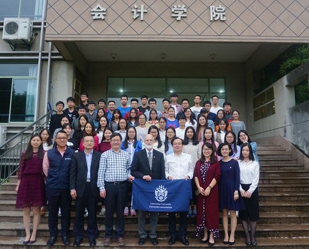 下午,黄建新和代表团一行与会计学中加合作项目员工见面。黄建新对劳伦森大学给予的帮助和支持表示感谢,对14级赴加员工提出了期许,希望同学们珍惜宝贵的交流机会,在加期间勤奋学习、积极上进,充分体验和学习加方文化和专业知识。陈骁翔老师介绍了劳伦森大学概况及前两届中加班员工在加学习和生活情况,并对14级即将赴加的员工进行了详细的行前辅导。通过这次见面会,使员工更加系统、全面地了解了在加期间的学习计划,对于即将到来的职工活也充满期待。