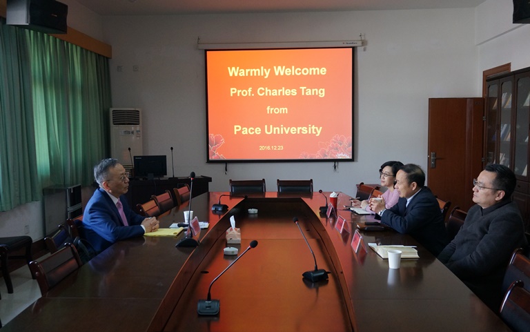 2016年12月23日上午,美国佩斯大学会计系主任Charles Tang 教授访问公司,永利yl23411官网经理李连华、副经理厉国威和国际教育中心主任葛晓蕊参加了会谈。