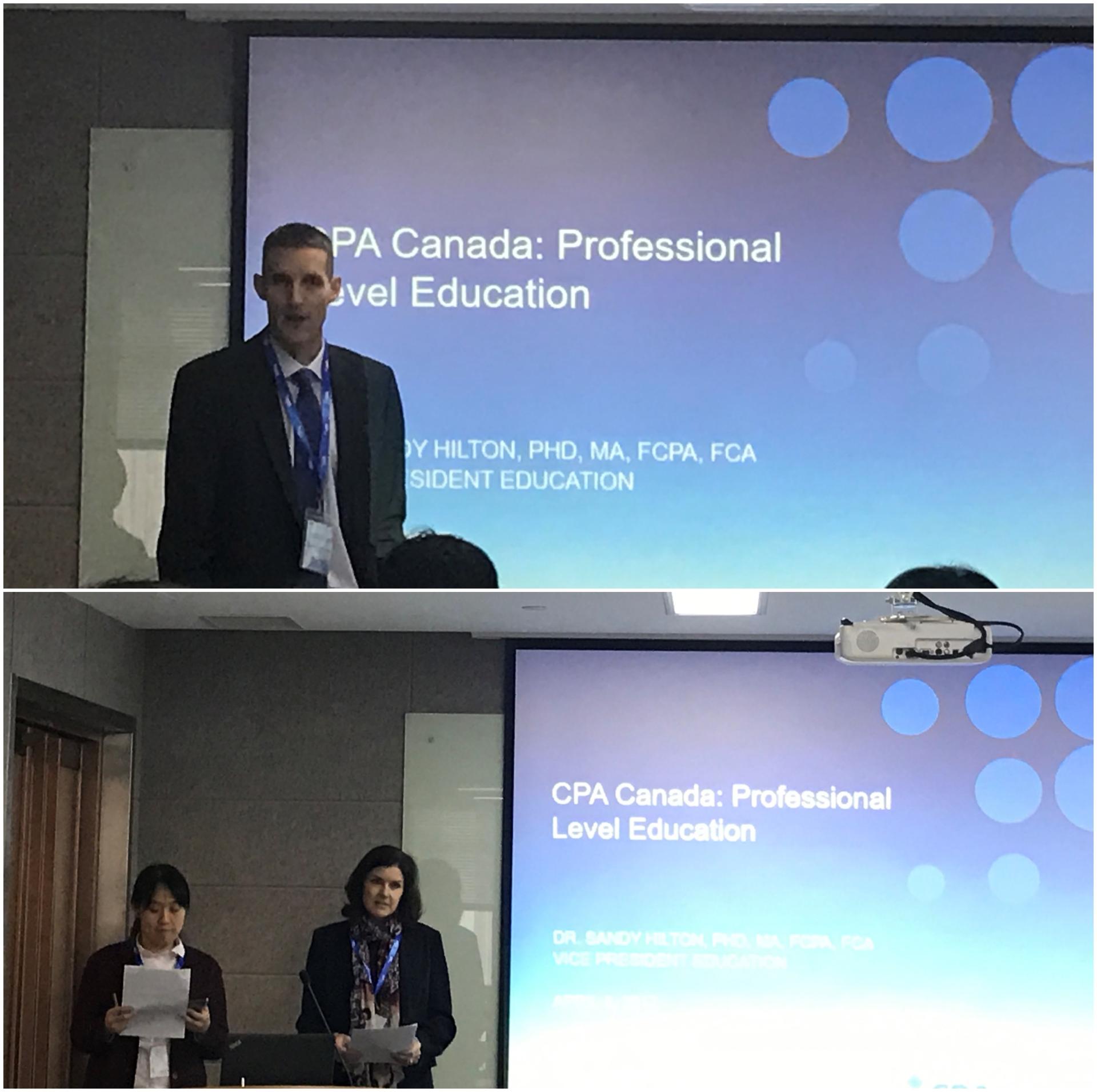 4月8日-4月9日,公司傅黎瑛、葛晓蕊、袁怡闻老师赴天津参加了由加拿大特许专业会计师协会(CPA Canada)举办的会计专业教育研讨会。