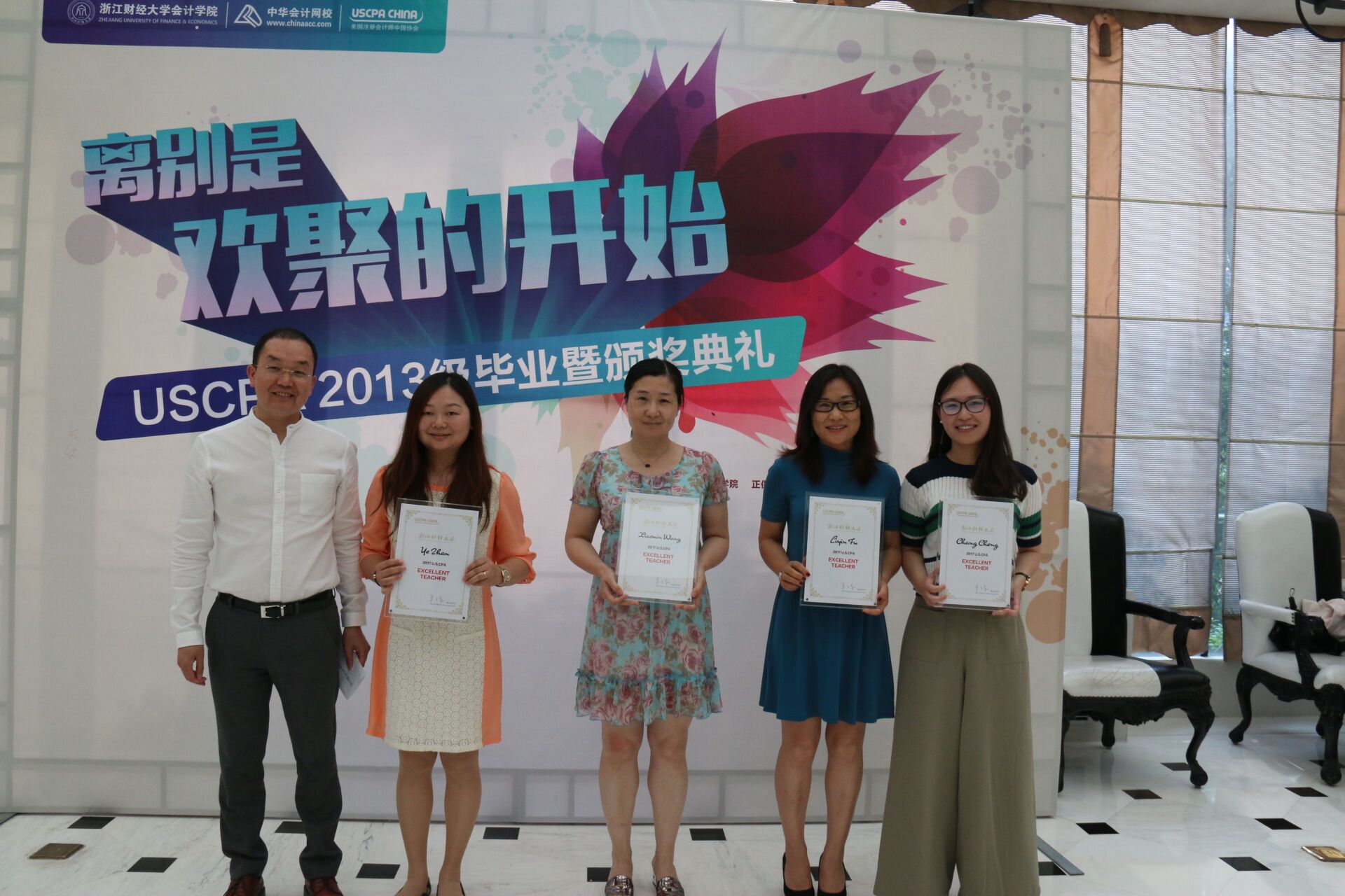 6月8日下午, 2013级USCPA方向班毕业暨颁奖典礼在下沙顺利举行。公司党委书记张红英、副经理厉国威、党委副书记张虹、正保远程教育集团副总裁卢宁贵以及USCPA方向班的老师们参加了典礼。