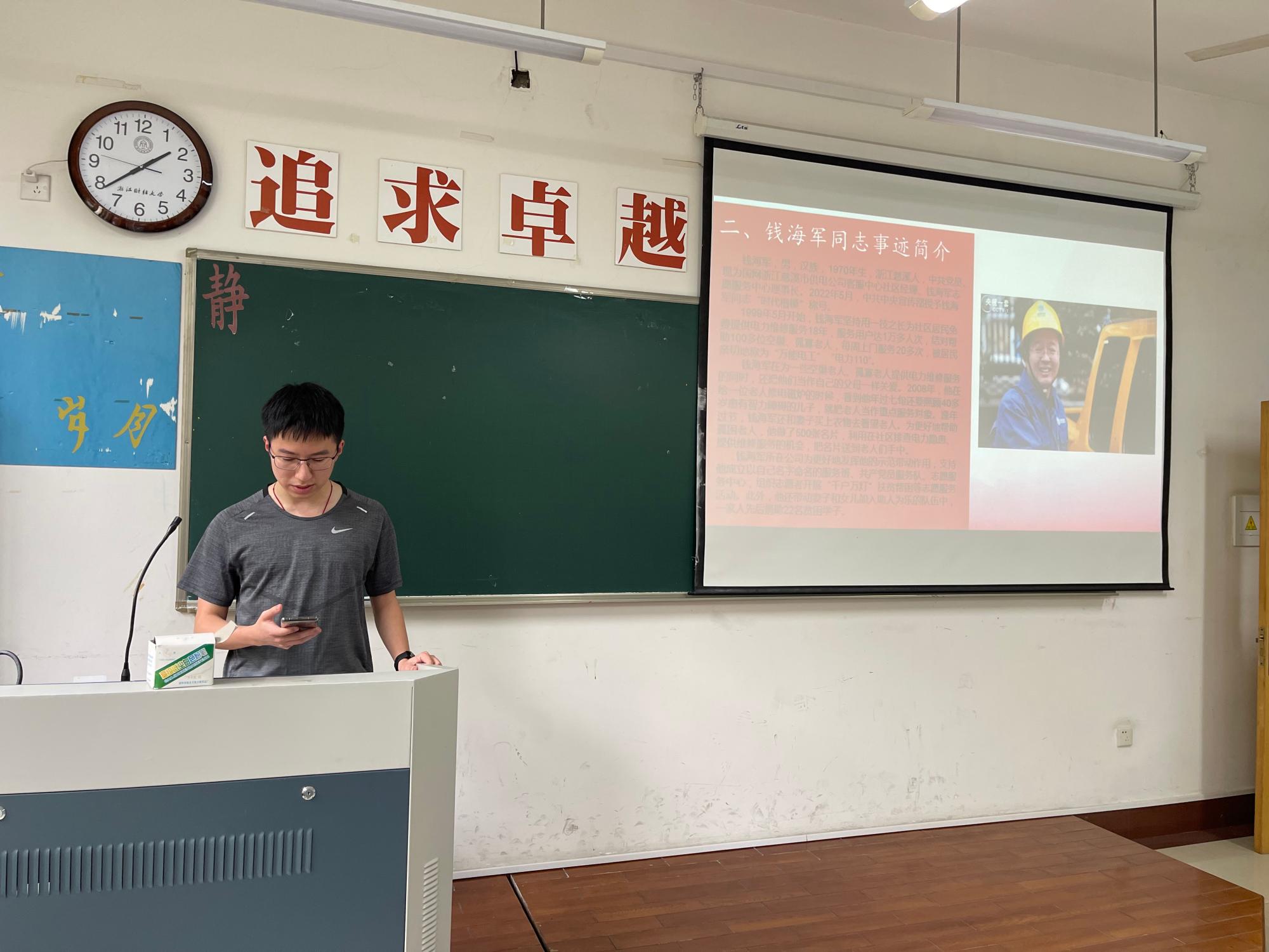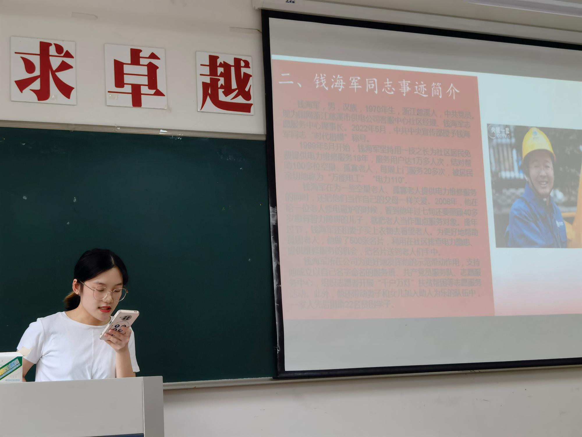 随后几位同志依次上台和大家交流了学习钱海军同志相关先进事迹后的心得感悟。李婉莹同志谈到了如何把先进榜样的力量化为己用,砥砺前行。她说:“钱海军同志无怨无悔、为民服务的事迹,值得我们每个人学习。我们需要以先进模范为榜样,从中国共产党人精神谱系中汲取精神滋养,在实现中国梦的伟大征程中勤于创造、勇于奋斗,以实际行动迎接党的二十大胜利召开。”史涛宁同志则表示:“一个人做一件好事并不难,难的是一辈子做好事。我们要像钱海军同志那样,在自己的岗位上兢兢业业、埋头苦干,以共产党员的光和热,当好生命不息、奋斗不止的‘照明灯’,让党的温暖之光时刻照耀在群众心坎上。”
