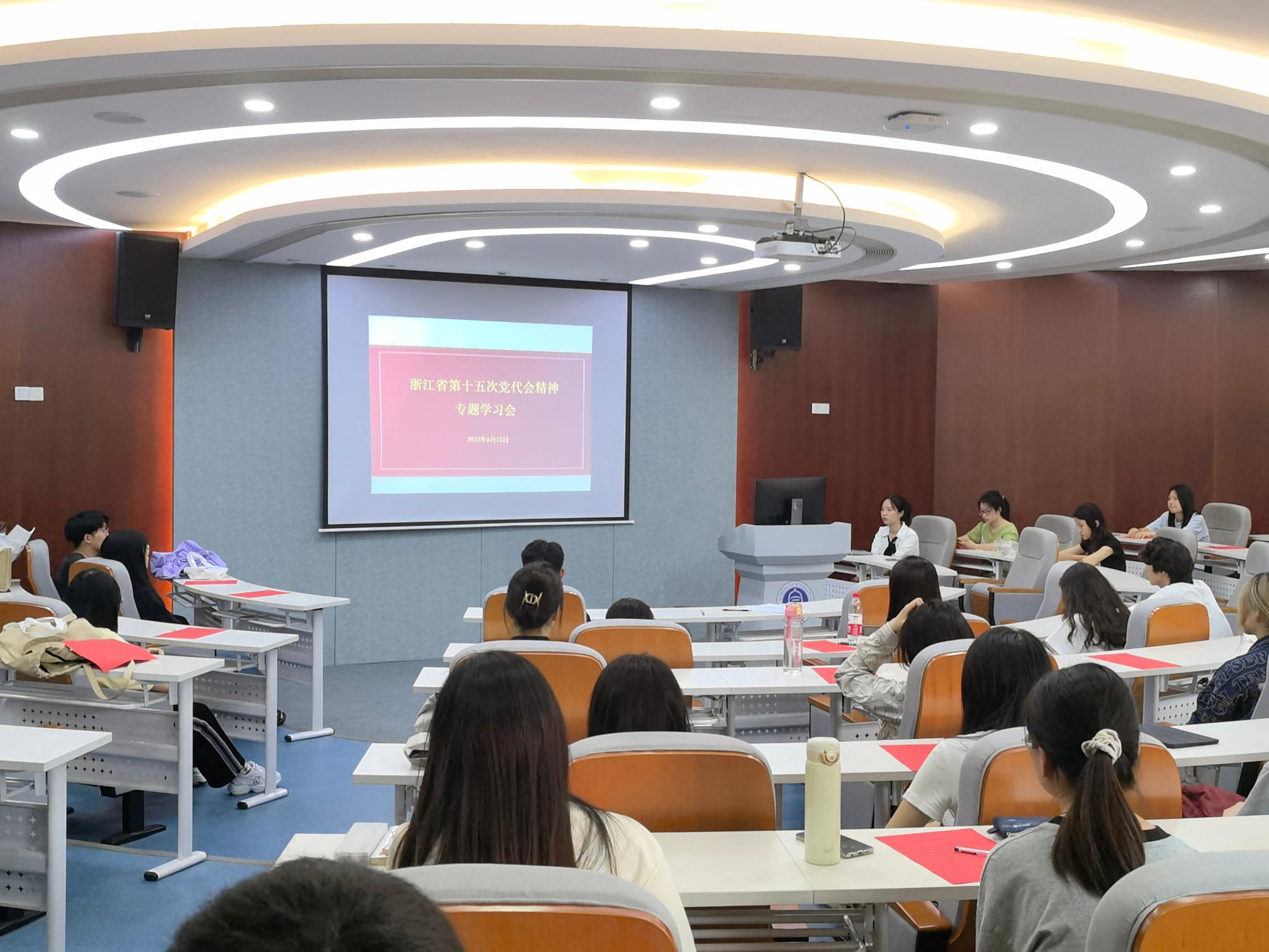 6月20日-22日,中国共产党浙江省第十五次代表大会在杭州隆重召开。公司党委、各党支部组织师生党员收听收看大会情况,6月23日上午,公司组织2022年新发展党员在公司楼111报告厅集体学习中国共产党浙江省第十五次代表大会精神。大家深受鼓舞,倍感振奋,纷纷表示要以时不我待、只争朝夕之姿,在实现第二个百年奋斗目标的“赶考”之路上勇当“两个先行”的探路先锋,向着又一个新征程阔步前行。公司掀起了学习党代会精神热潮。