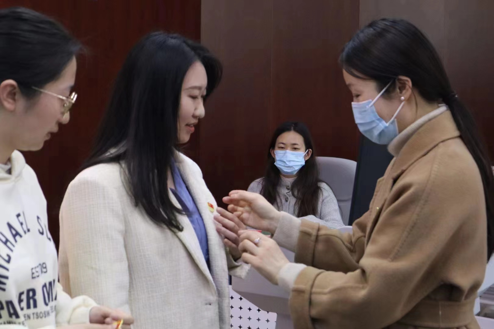公司党委副书记陈炜同志宣读了2022年下半年新发展党员名单,并为新党员代表佩戴党徽,勉励全体新发展党员不断增强党性意识,成为同学中的表率。