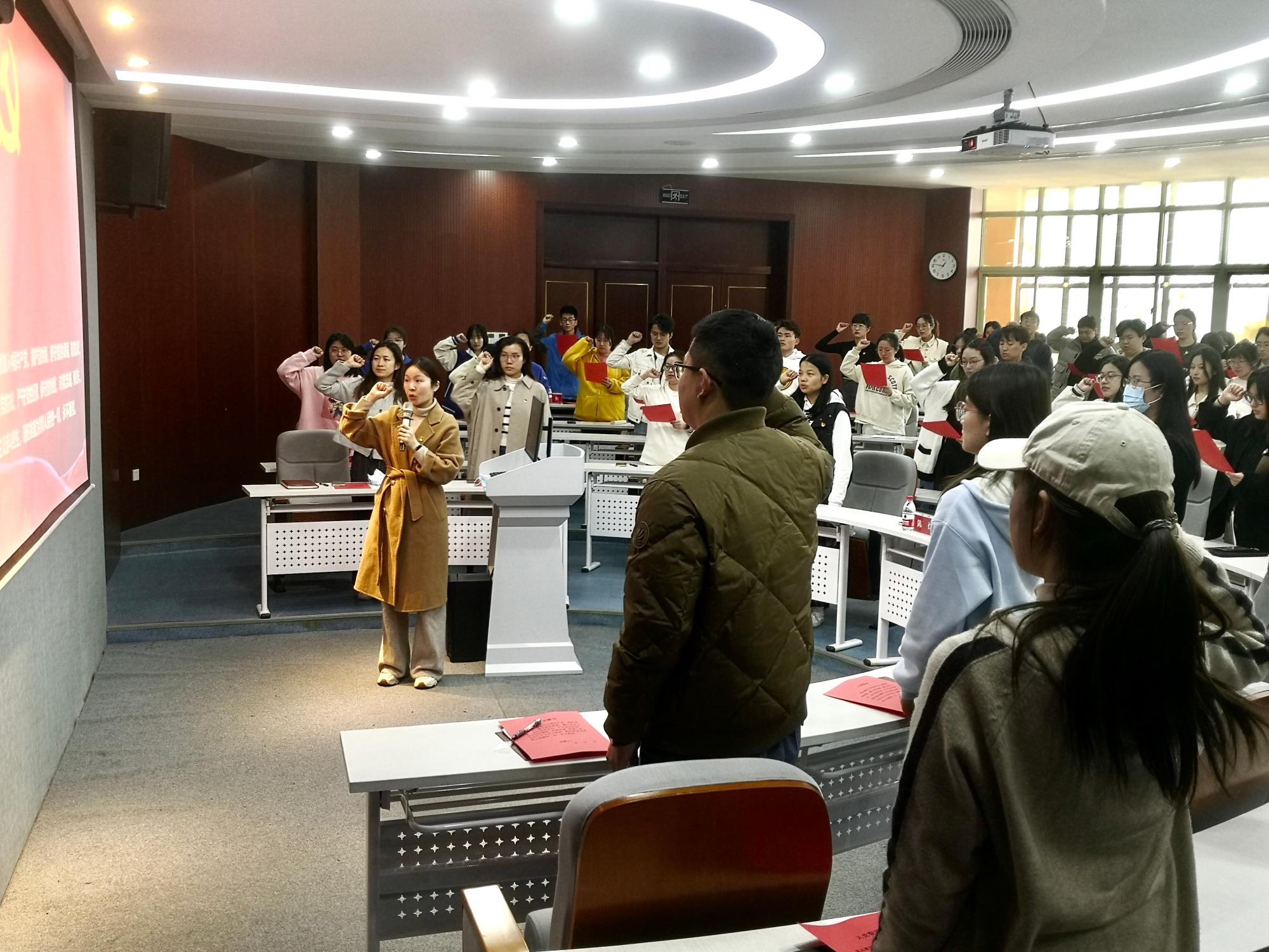 为深入学习宣传贯彻党的二十大精神,教育引导党员永葆初心,践行入党誓词,2023年3月14日下午,公司党委在公司楼111报告厅举行2022年下半年新发展党员入党宣誓仪式。公司党委副书记陈炜、全体员工党支部书记、组织员及2022年下半年新发展党员参加了活动。