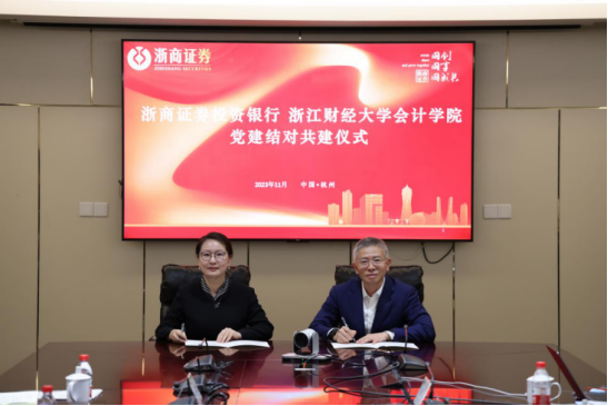 会上,双方充分交流,就党建共建、课题共研、毕业生实习等方面达成了合作意向。随后,公司党委书记张虹与浙商证券副总裁、党委委员、投资银行党总支书记程景东代表双方签署党建共建协议。