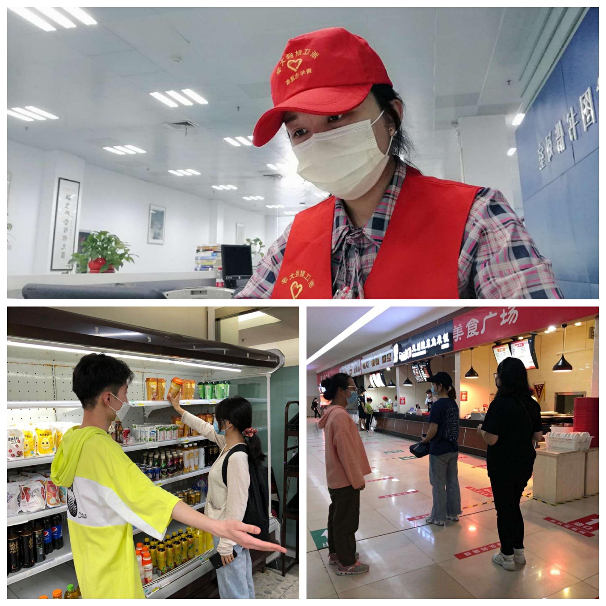 在食堂,支部党员提醒同学们在就餐时佩戴好口罩,保持一米的排队距离;在超市,支部党员呼吁大家用支付宝、微信钱包等支付方式零接触付款,即买即走。在图书馆,支部党员统计各分馆人数,并且及时上报负责人,为入馆同学提供空座位查询便利。