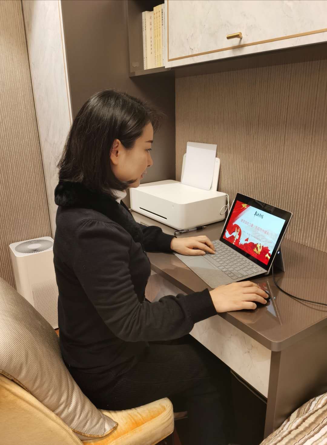 在网络直播党课中,张虹书记结合当前新冠肺炎疫情防控情况,从习近平总书记对疫情防控作出重要指示、加强对疫情防控的统一领导、充分发挥先锋模范作用、守初心担使命等四个方面,详细阐述了在疫情防控中凸显的“中国速度”、“中国力量”和“中国精神”。她强调,员工党员要主动扛起时代责任,坚定理想信念,厚植爱国情怀,践行初心使命,为坚决打赢疫情防控阻击战贡献自己的力量。