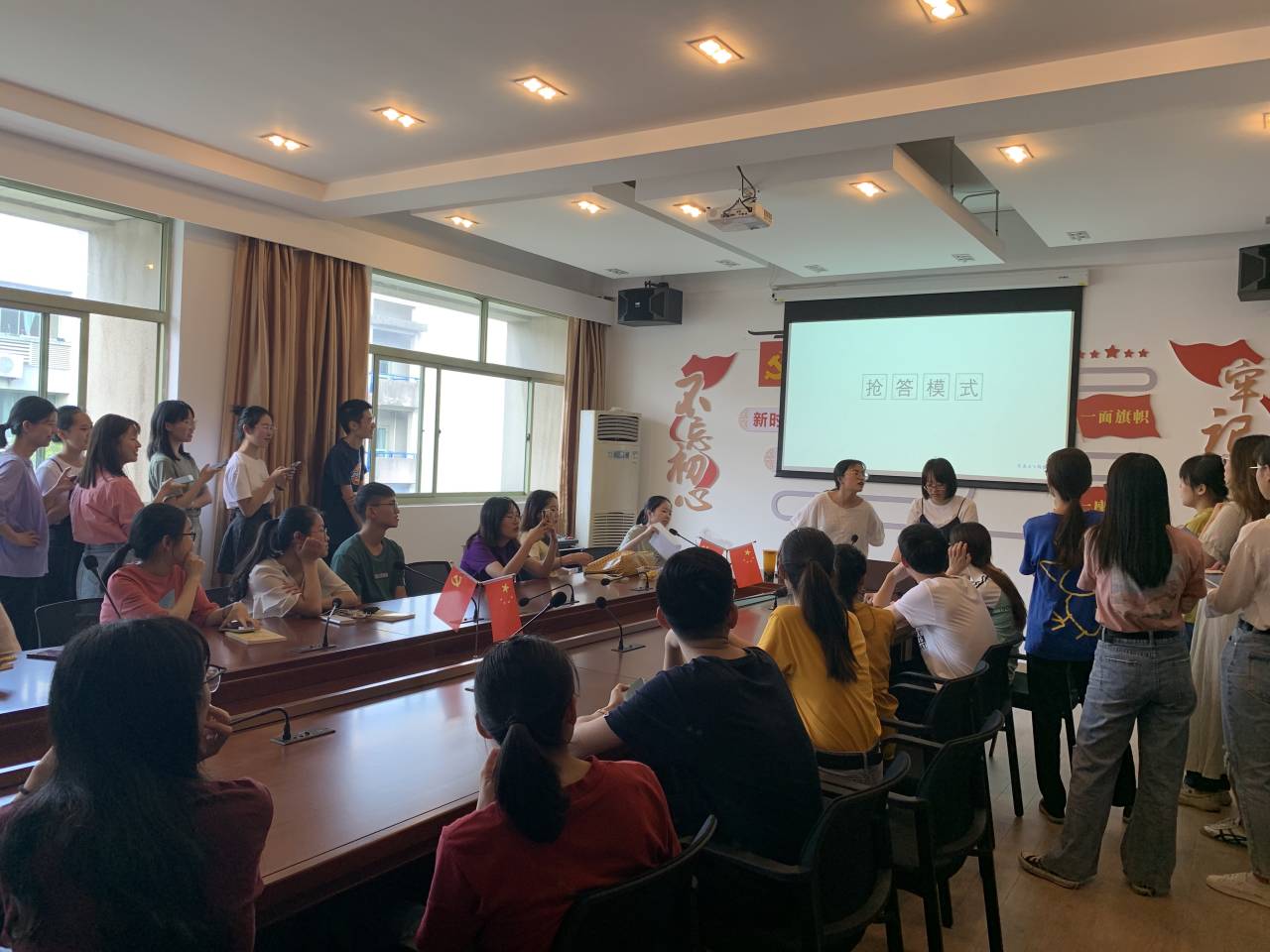 本次竞赛分为团队赛和抢答赛。在团队赛中,每个小组进入学习强国“挑战答题”界面进行连续十轮答题的比拼。在每轮限时两分钟的答题时间内,小组成员们群策群力,绞尽脑汁,争分夺秒为团队争取胜利。经过紧张激烈的十轮团队赛,伴随着欢呼和叹息,总答对题数最少的两组接受了“生吃柠檬”的惩罚,而颜至远带领的第八组和林娴带领的第七组凭借丰富的知识储备以及快速的反应能力在团队赛中取得前二名并进入抢答赛环节。在抢答赛中双方势均力敌,比分紧咬,最终第八组以微弱的优势战胜了第七组,取得了本次知识竞赛的冠军,在掌声中获得了 “清凉奶茶”的奖励。