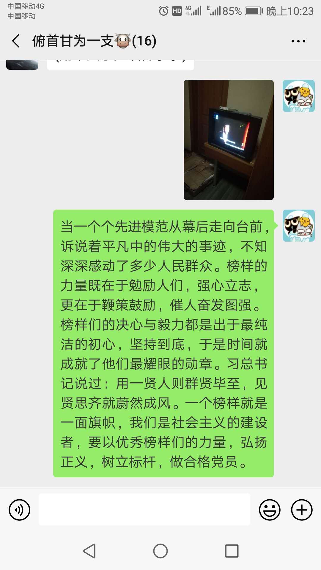 支部党员深受榜样力量的熏陶,并对未来向优秀榜样学习、践行党员的榜样力量提出了自己的一些看法。“这些在我们身边的榜样,他们坚守那份纯粹的初心。他们的存在,就是前行中的榜样力量,我们应该在向他们学习的同时不断提高自己,像他们一样把这份力量传递下去。”“一个榜样就是一面旗帜,我们是社会主义的建设者,要以优秀榜样们的力量,弘扬正义,树立标杆,做合格党员。”