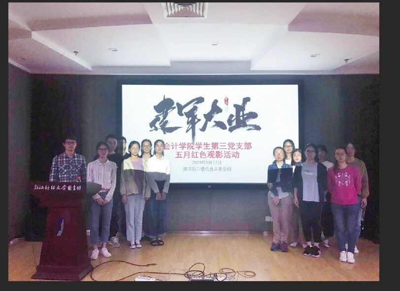 2019年5月17日晚,永利yl23411官网员工第三党支部的同学们聚集在图书馆六楼信息共享空间,共同观看红色电影《建军大业》,积极用双语来抒发观影心得。